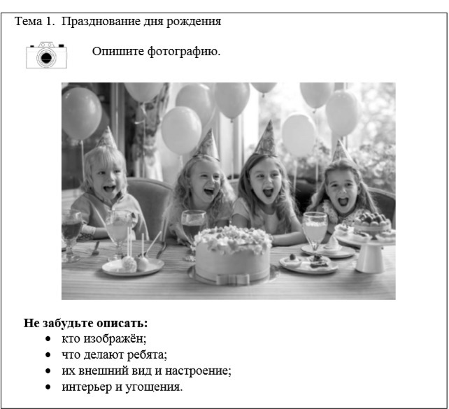 На данной фотографии в глаза бросаются несколько детей. Скорее всего они находятся на каком-либо празднике, возможно на дне рождения. Они находятся в прекрасном настроении, и явно рады происходящему, что заметно по искренней улыбке на их лице. Они все одеты в легкую одежду, и в колпаки, вокруг них можно заметить много шариков, что в очередной раз доказывает нам о том, что это праздник. Они находятся в весьма просторной комнате, украшенной в честь данного события. На столе заметны различные угощения: от маленьких пирожных на тарелках до большого торта в центре праздничного стола!
