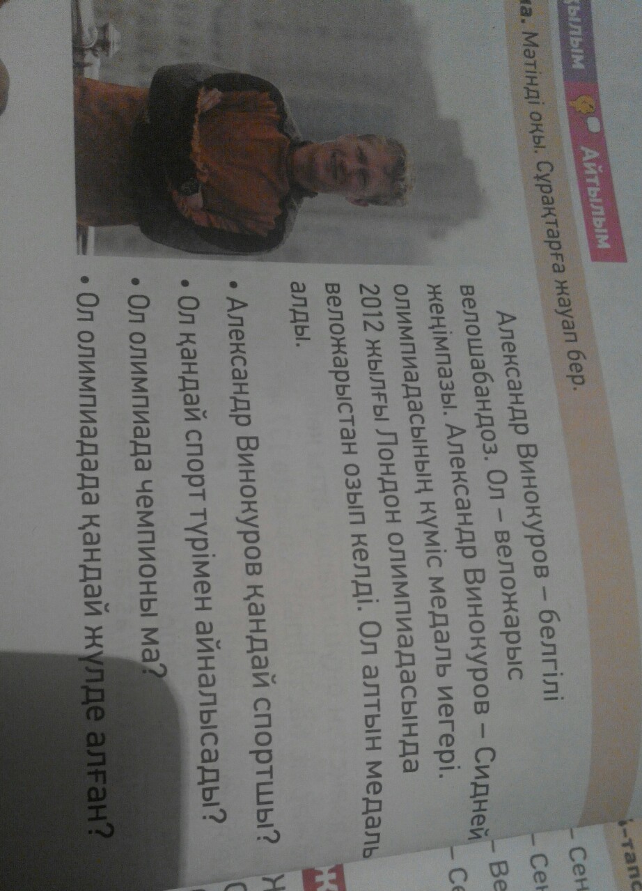 Александр Винокуров веложарыс спортшы.Ол- веложарыс жеңімпазы. Иә, ол чемпионы.Ол