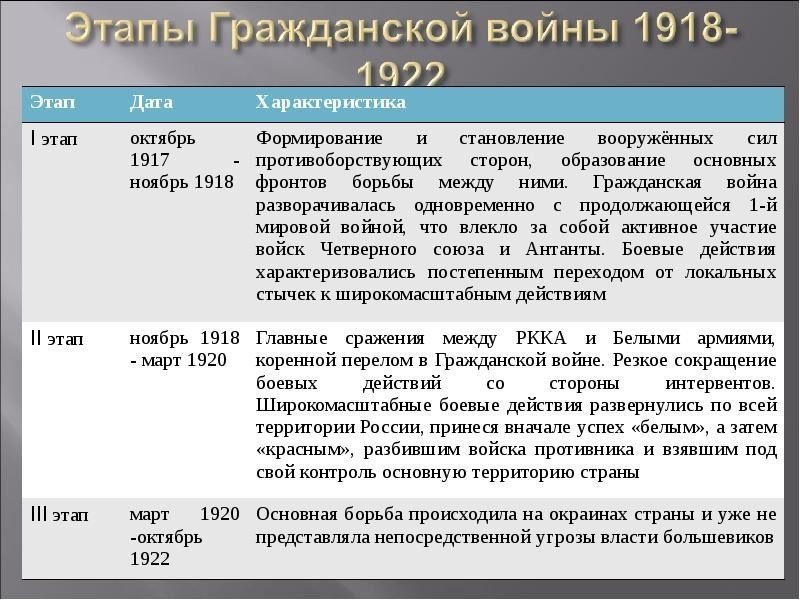 СРОЧНО !!!60 БАЛЛОВ!!!! заполните таблицу пжжж этапы гражданской войны 1917-1922
