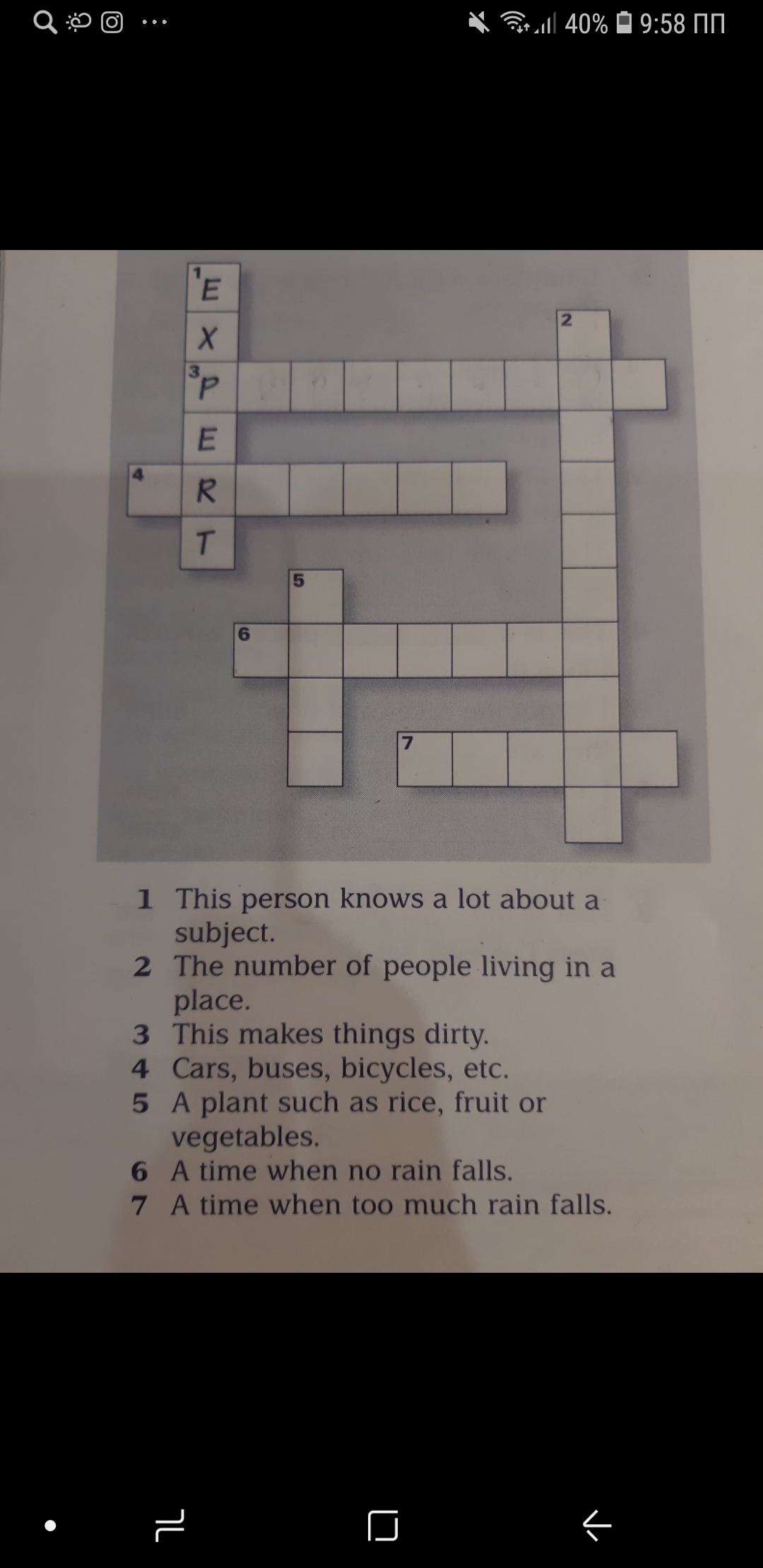 2 population 3 pollution 4 transport 5 crops 6 drought 7 flood