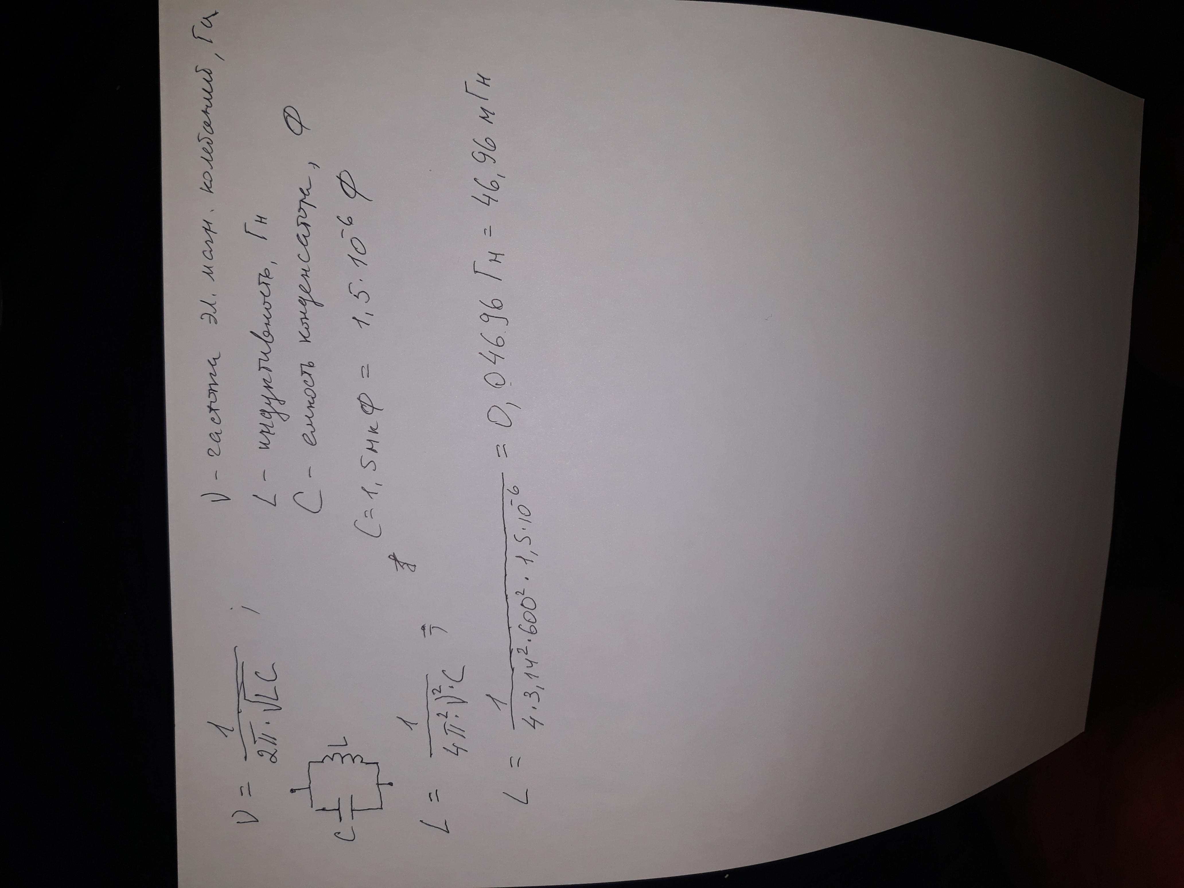 v=1/(2×pi×sqrt(LC)), смотри прикрепленное фото