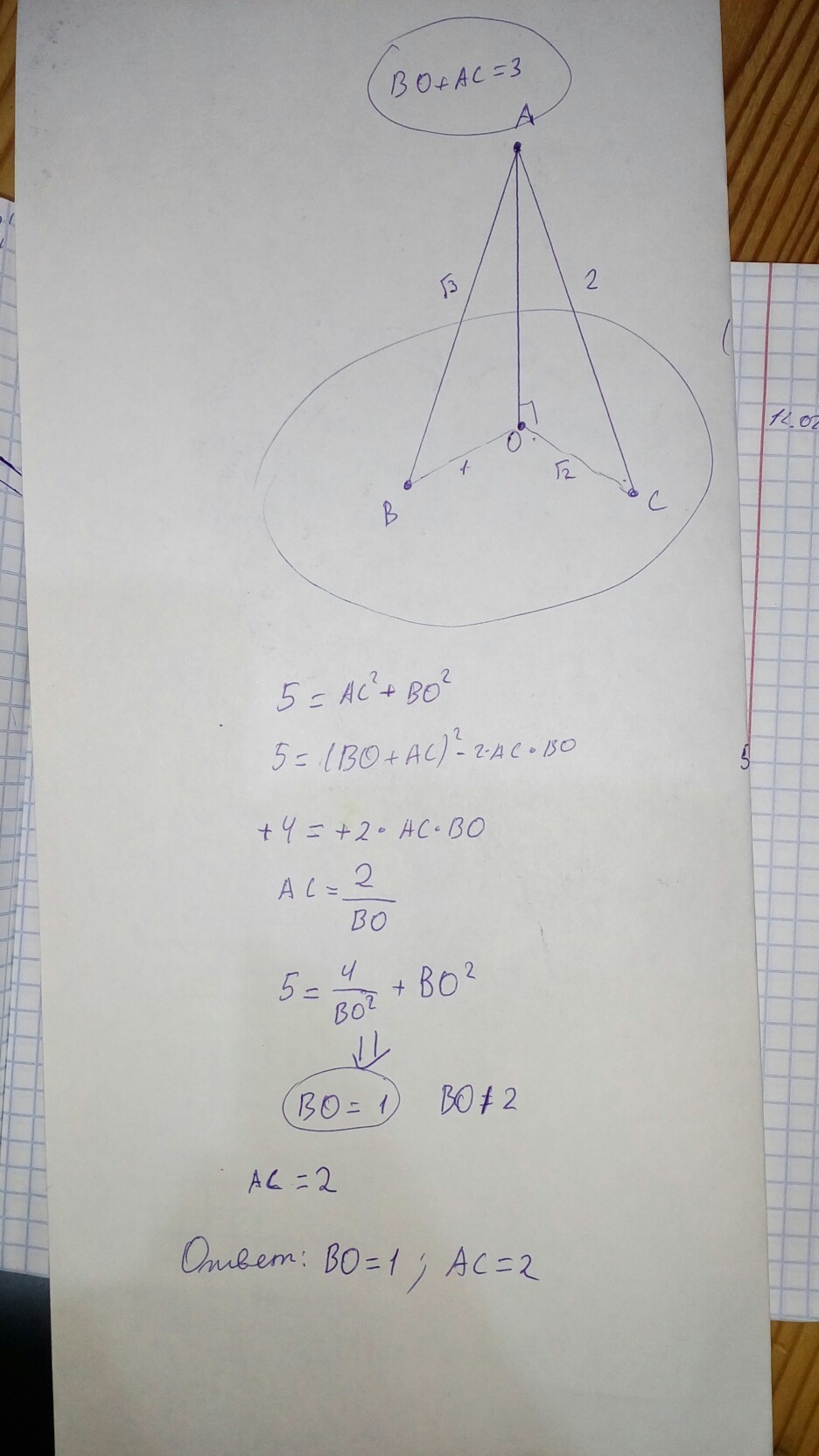 BO i AC якщо BO + AC= 3 cм, AB=корінь з 3см, OC= корінь з 2см.