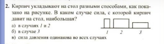 чем меньше площадь одной и той же массы, тем больше сила , с которой кирпич давит на стол.