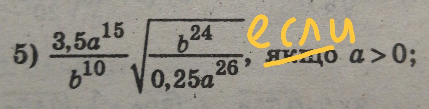 (3,5a^15/b^10)*(b^24/0,25a^26)^(1/2) = (3,5*(a^15)*(b^12))/((b^10)*0,5*(a^13) = 7*(b^2)*(a^2)