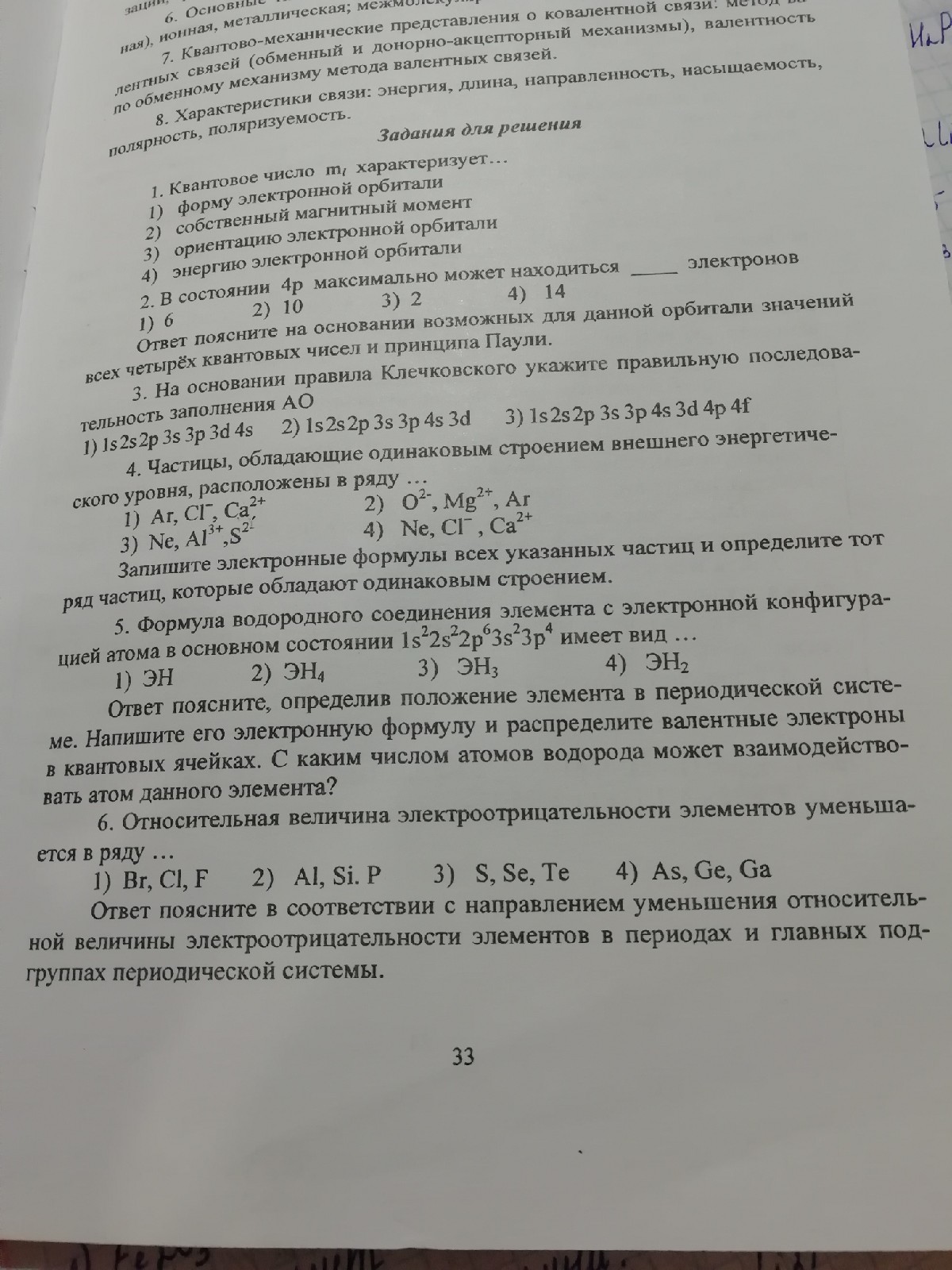 4) Правильный ответ 1) Ar, Cl-, Ca2+