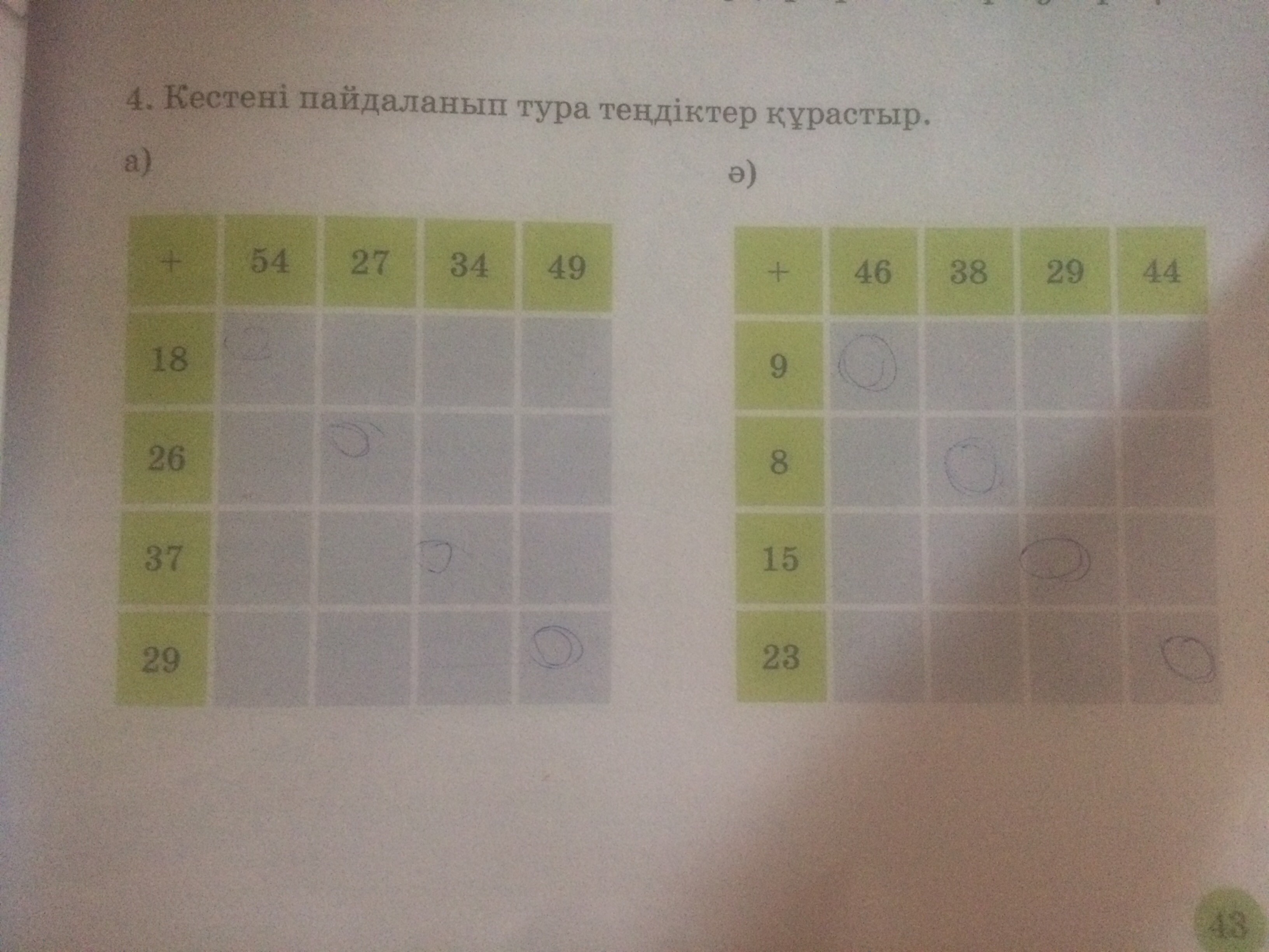 а) 43 20 27 42 б)47 38 29 44