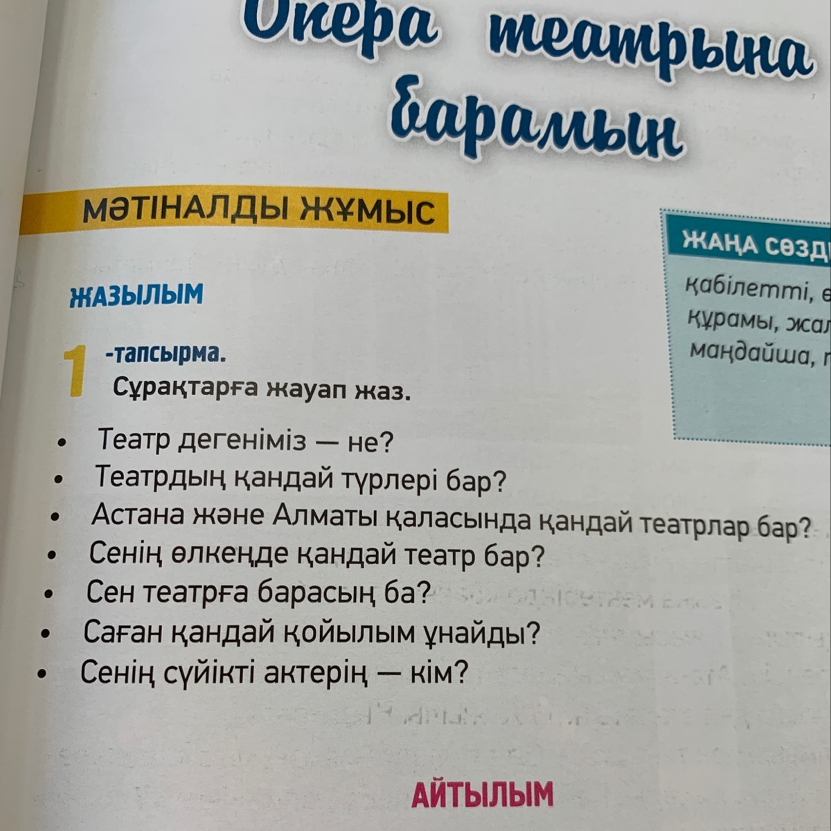 1.Театр дегенимиз ол онер адамдары онер корсететин жер