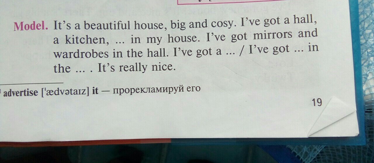 Это замечательный дом, большой и уютный. У меня в доме есть прихожая, кухня. У меня есть зеркала и шкафы в прихожей. У меня есть ... У меня есть ... в... . Это действительно здорово.