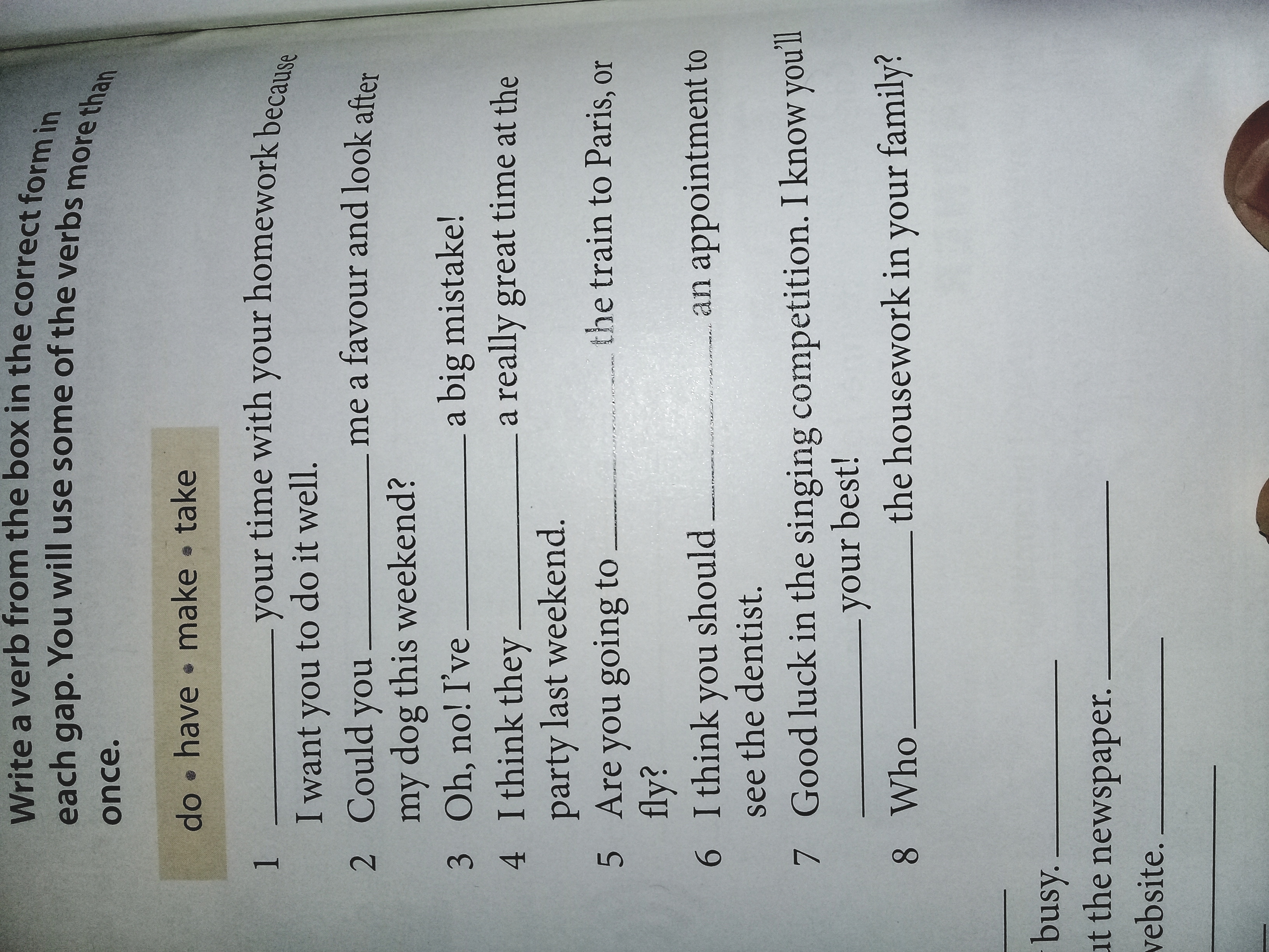 1 Take your time with your homework because I want you to do it well.