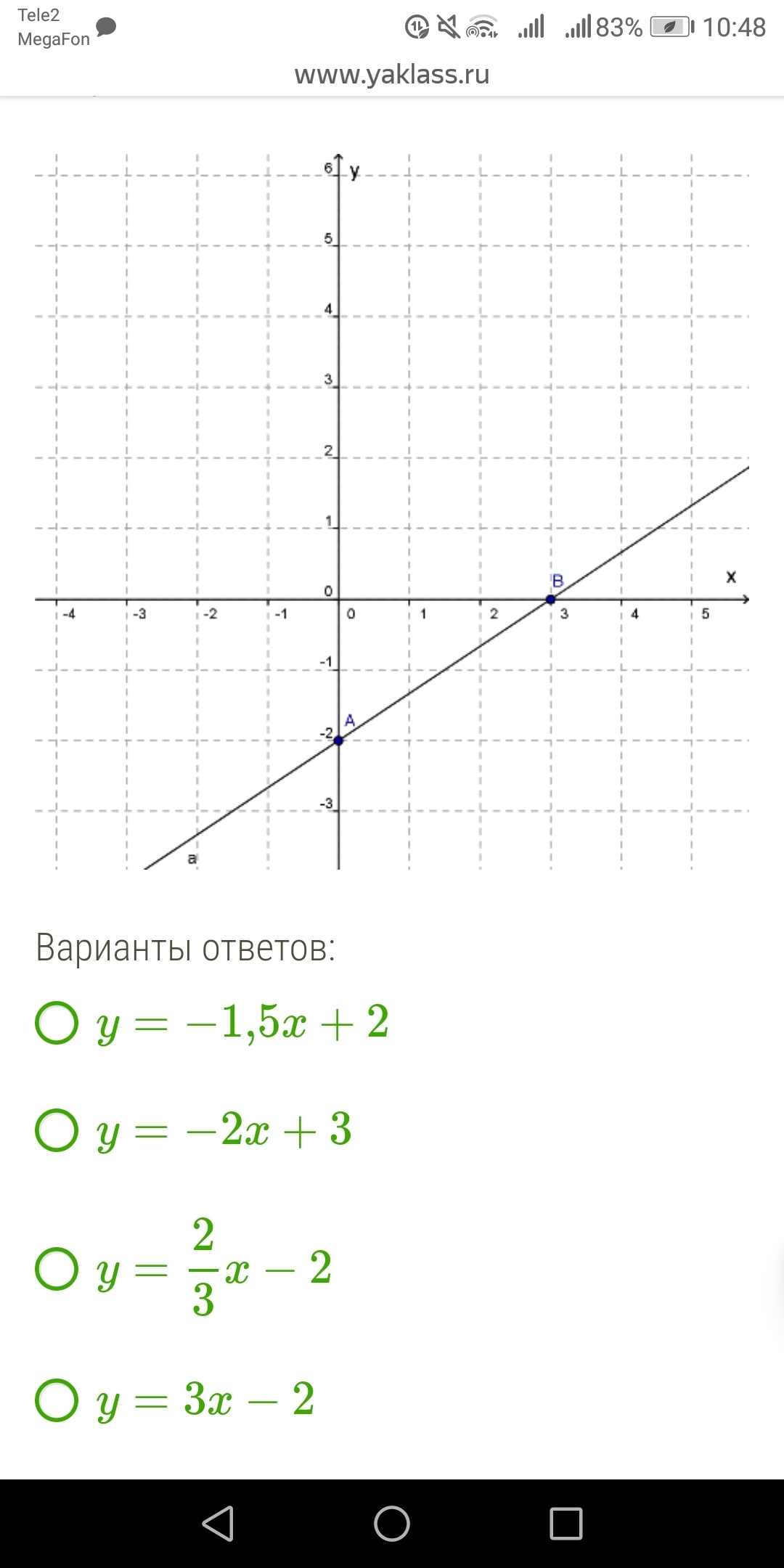 1) y = 2/3 x - 2