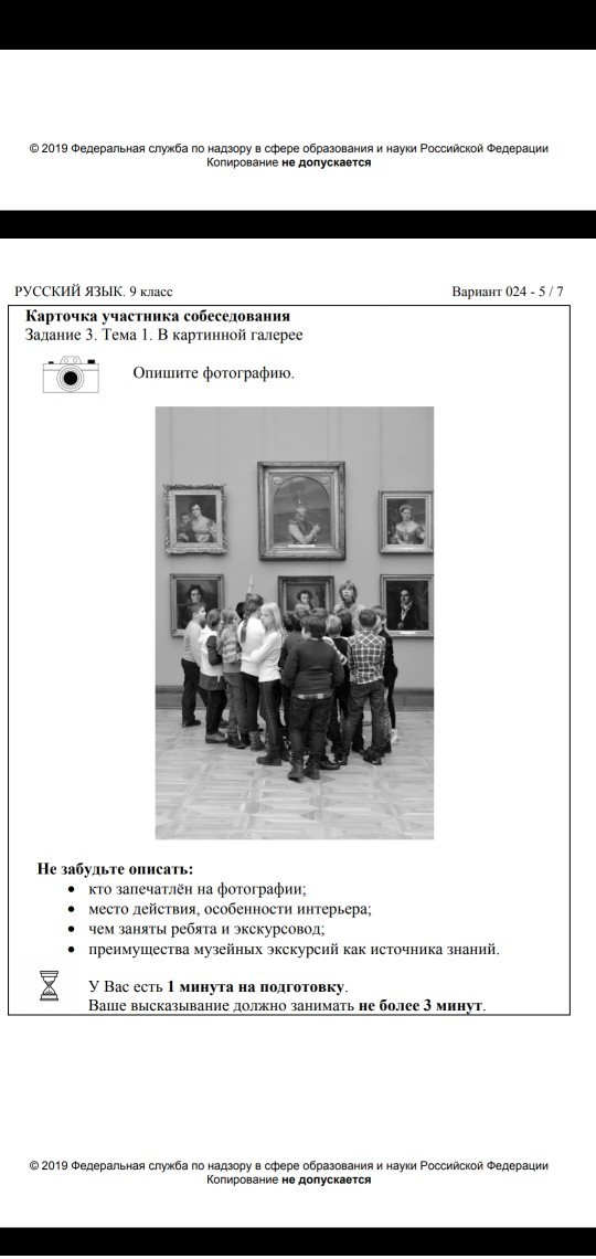 Передо мной черно белое фото.На нем изображено картинная галерея.Учитель с классом пришли на выставку.На фото видно что дети заинтересованы происходящим.картины написаны в одном стиле.Все картины одного размера кроме одной.Светловолосая девочка отвлеченно смотрит в сторону.