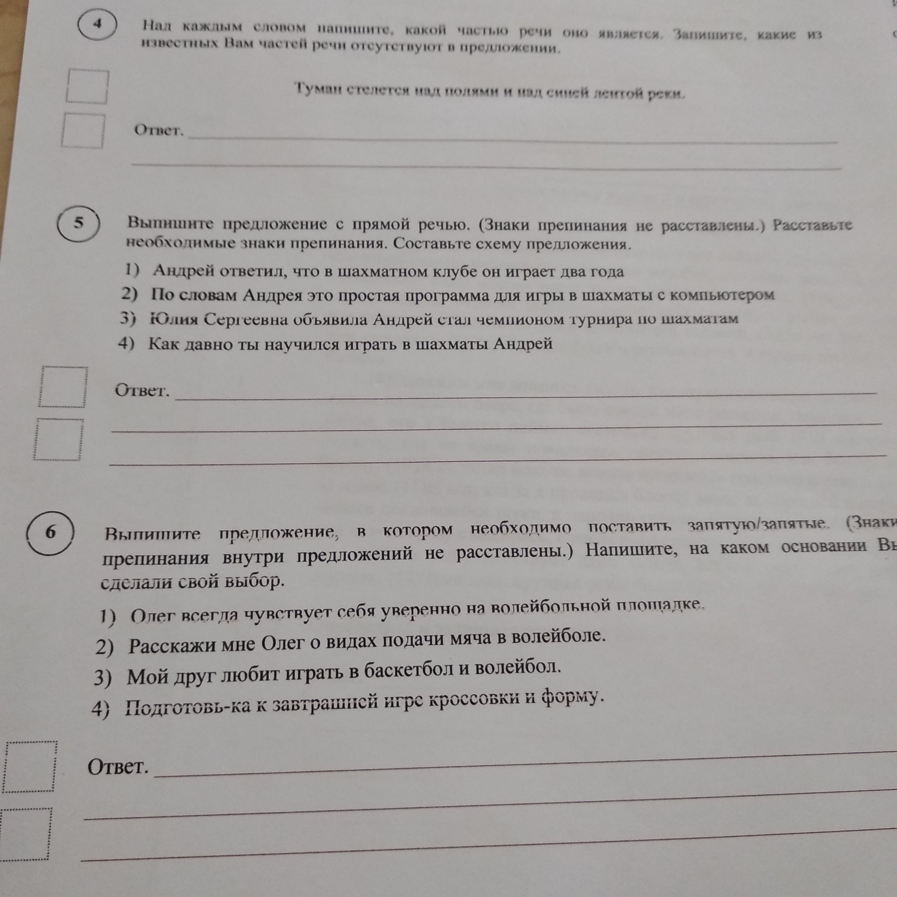 5. 3) Юлия Сергеевна объявила: "Андрей стал чемпионом мира по шахматам".