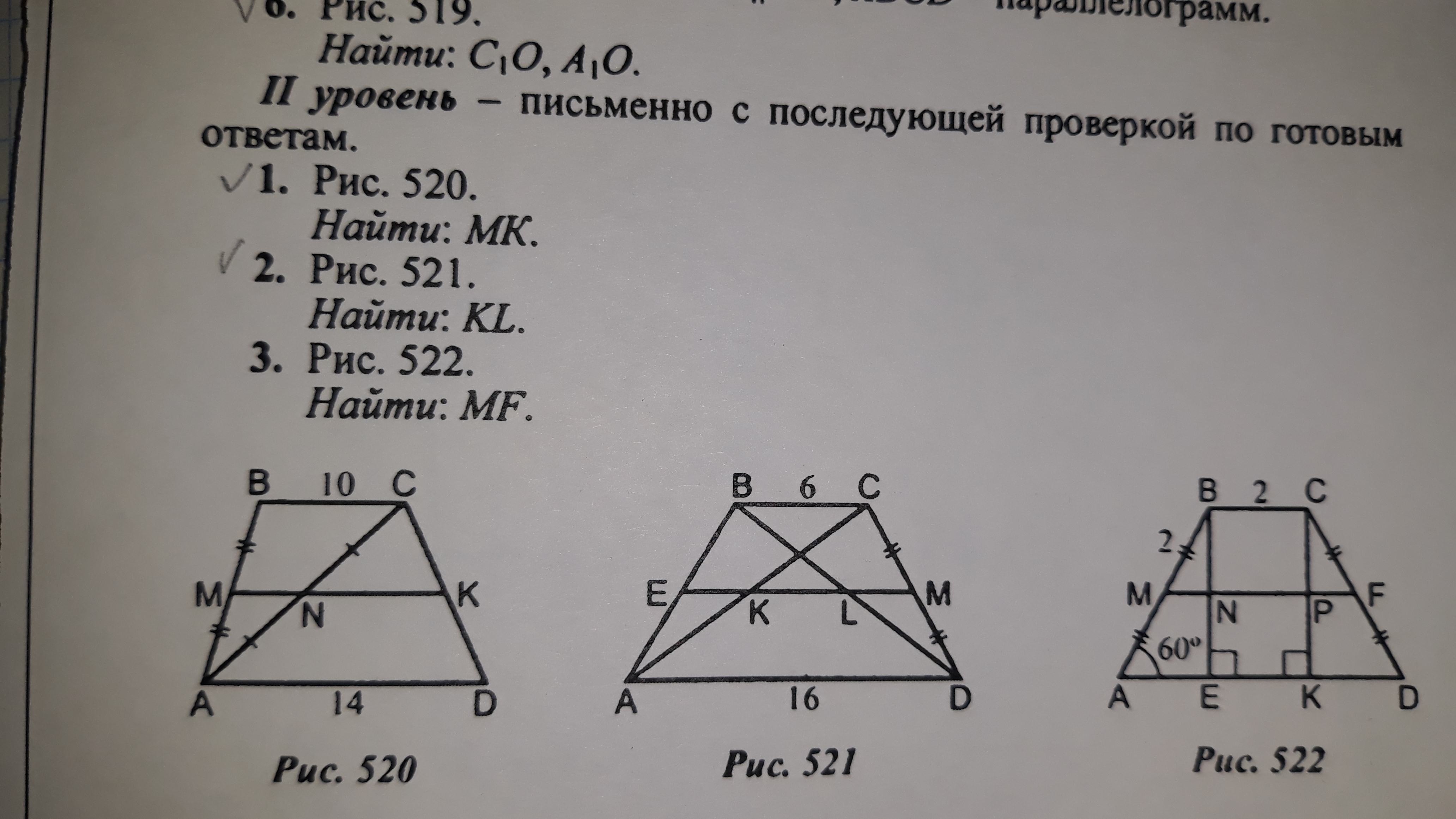 1) Средняя линия трапеции равна полусумме оснований.