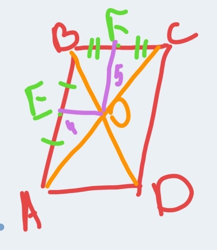 Диагонали параллелограмма ABCD пересекаются в точке O, E-середина AB, F-середина BC, OE=4см, OF=5см. Найти периметр ABCD.
