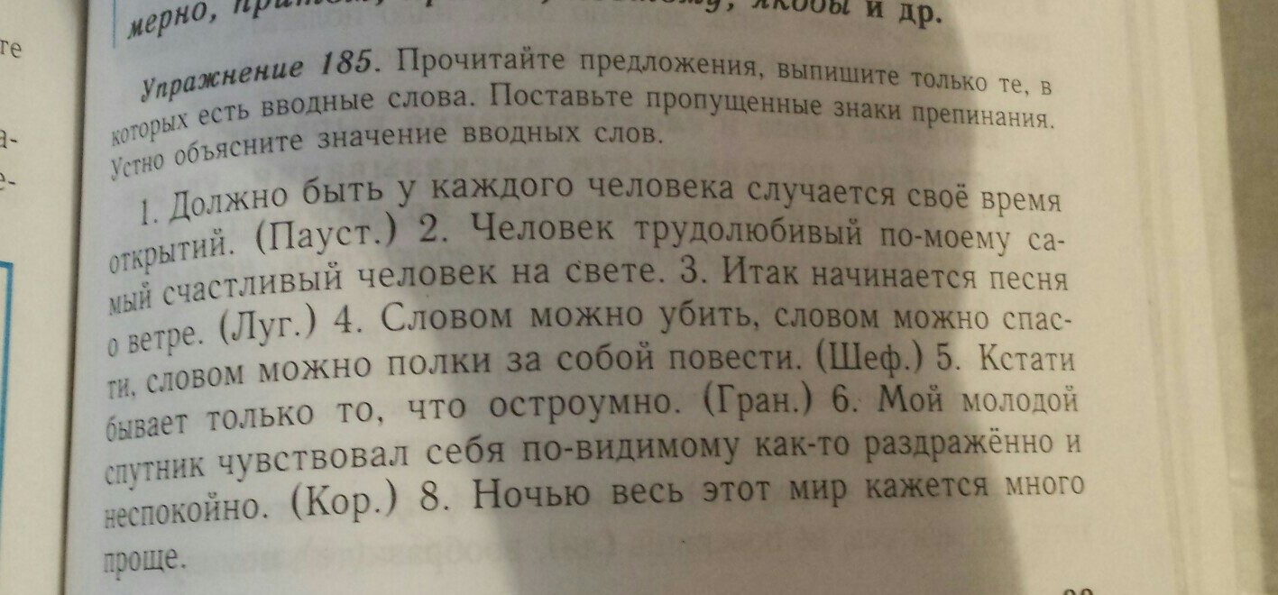 Должно быть ( меньшая степень уверенности ) , у каждого человека случается своё счастливое время открытий. Человек трудолюбивый, по - моему ( источник сообщения ), самый счастливый человек на свете.Итак ( порядок мыслей и их связь ) , начинается песня о ветре.Мой молодой спутник чувствовал себя, по-видимому ( меньшая степень уверенности) , как-то раздраженно и неспокойно.