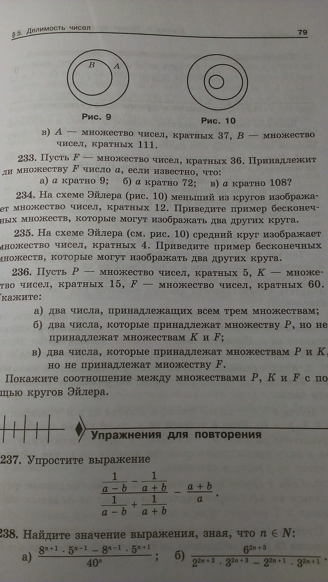 235. Большой круг - множество чисел кратных 2. Малый круг - множество чисел кратных 8.