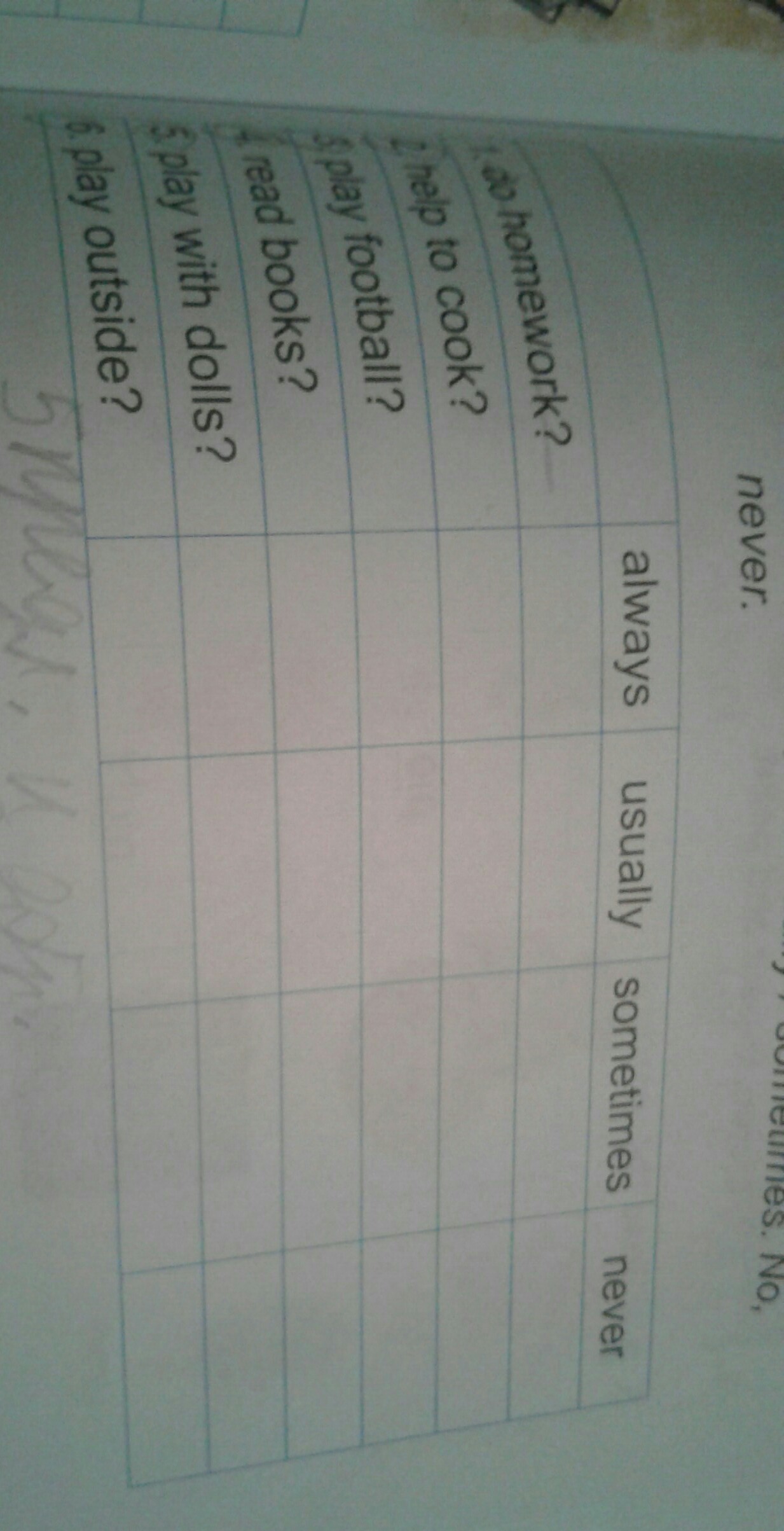 составить предложения с этими глаголами и с словами олвэйс которые на верху таб. и задать вопросы Do или Does эти слова должны исп. в воп. и ответить кратко например: Yes,I do срочно!!