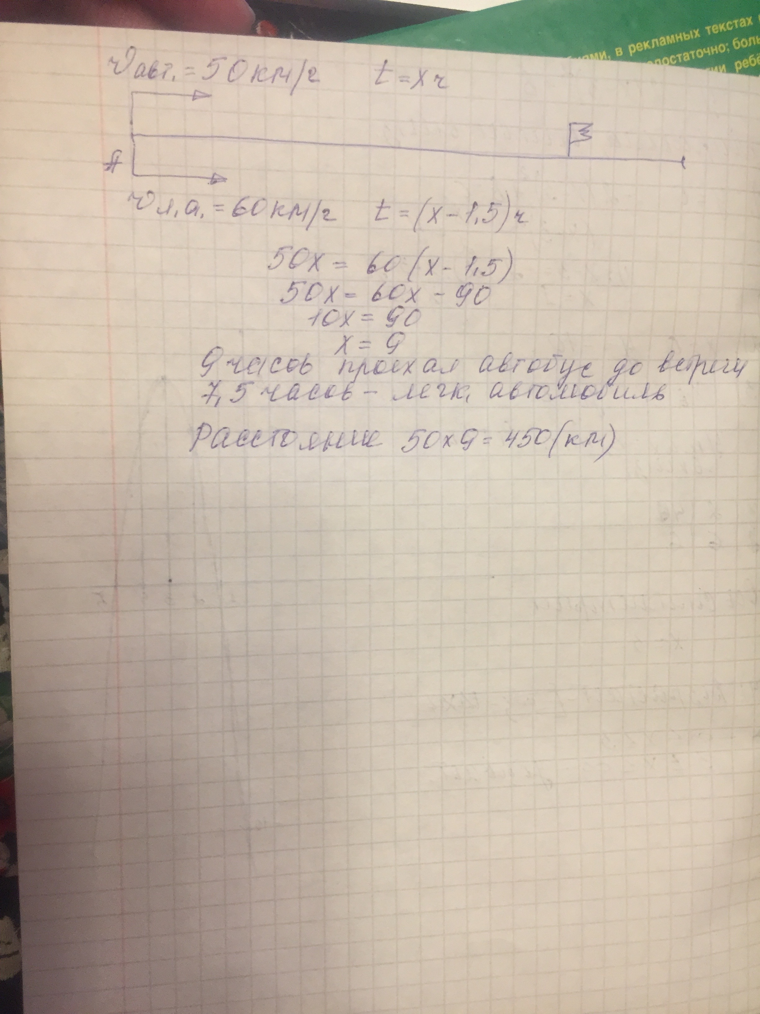 1) 50* 1,5 =75 км - проехал автобус за 1,5 ч
