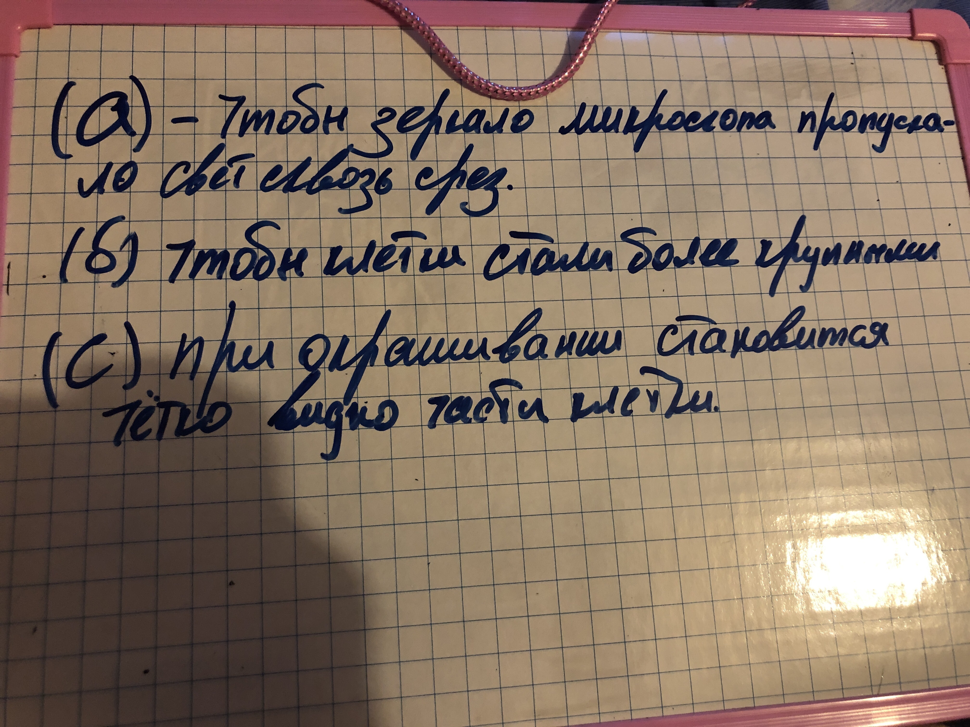 4. Срез делают тонким, чтобы через него мог проходить свет от зеркала ( или лампы) , иначе препарат нельзя будет рассмотреть.