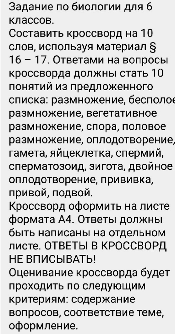 Задание по биологии для 6 классов кроссворд. Пж скиньте если кто-то делал инфа на скрине
