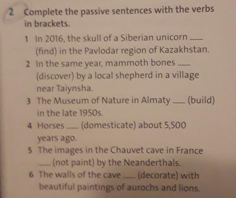 was found, were discovered, was built, were domesticated, weren't painted, were decorated