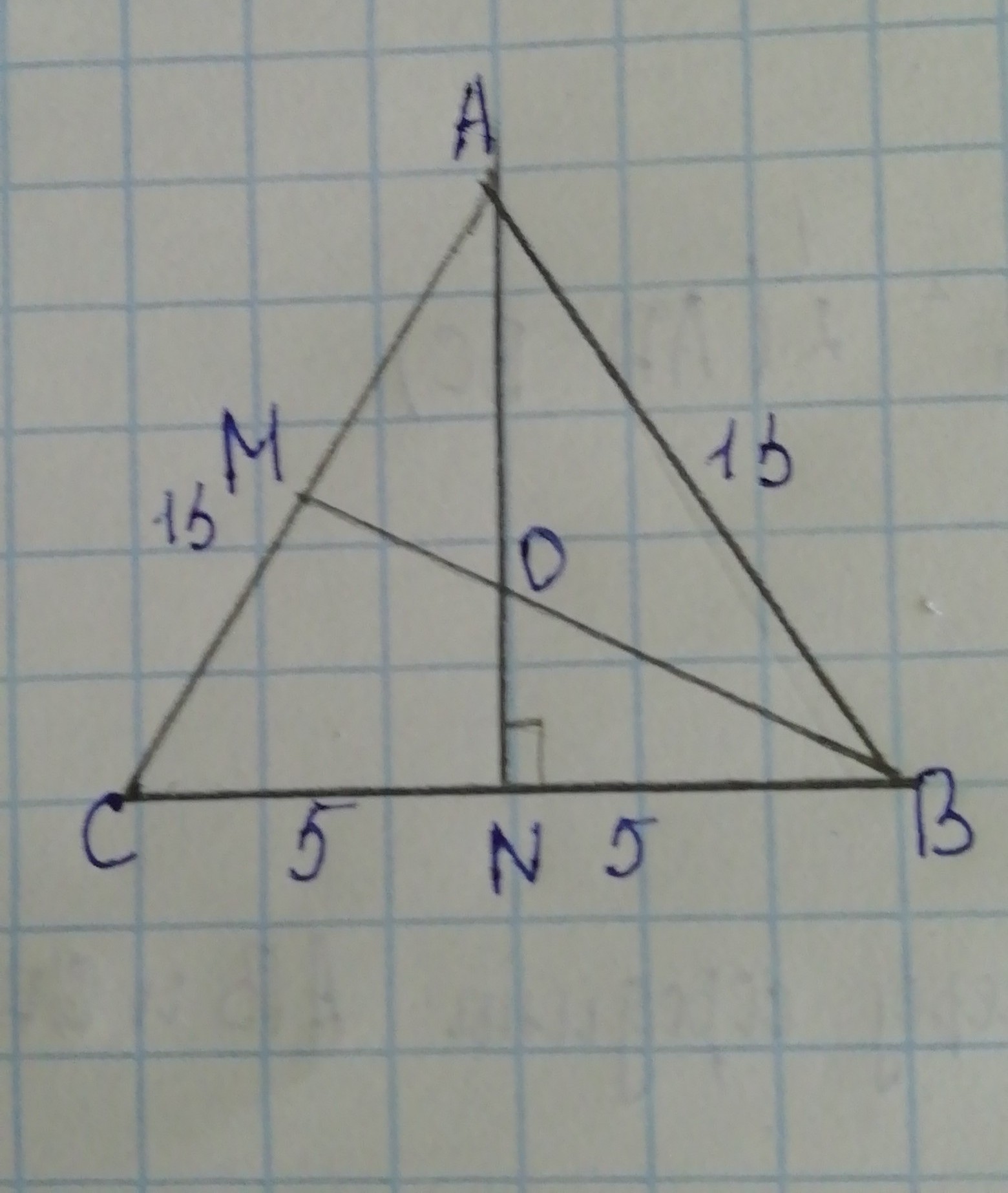 В равнобедренном треугольнике АВС медианы пересекаются в точке О.Найдите расстояние от точки О до вершины B данного треугольника,если АВ=BC=13см,AC=10см.