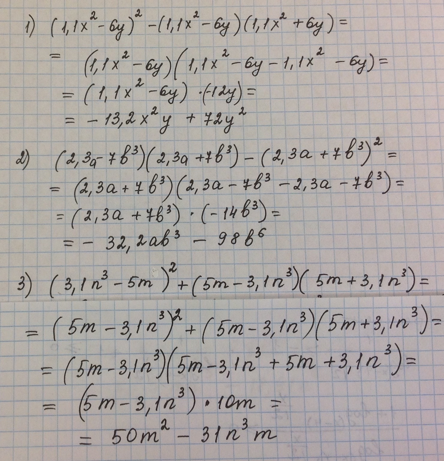 (1,1х^2-6у)^2-(1,1х^2-6у)(1,1х^2+6у) и ещё два примера по фото дам 20 баллов номер 35,2