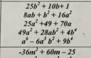6) - 36m² + 60m - 25 = - (36m² - 60m + 25) = - ((6m)² - 2 * 6m * 5 + 5²) =