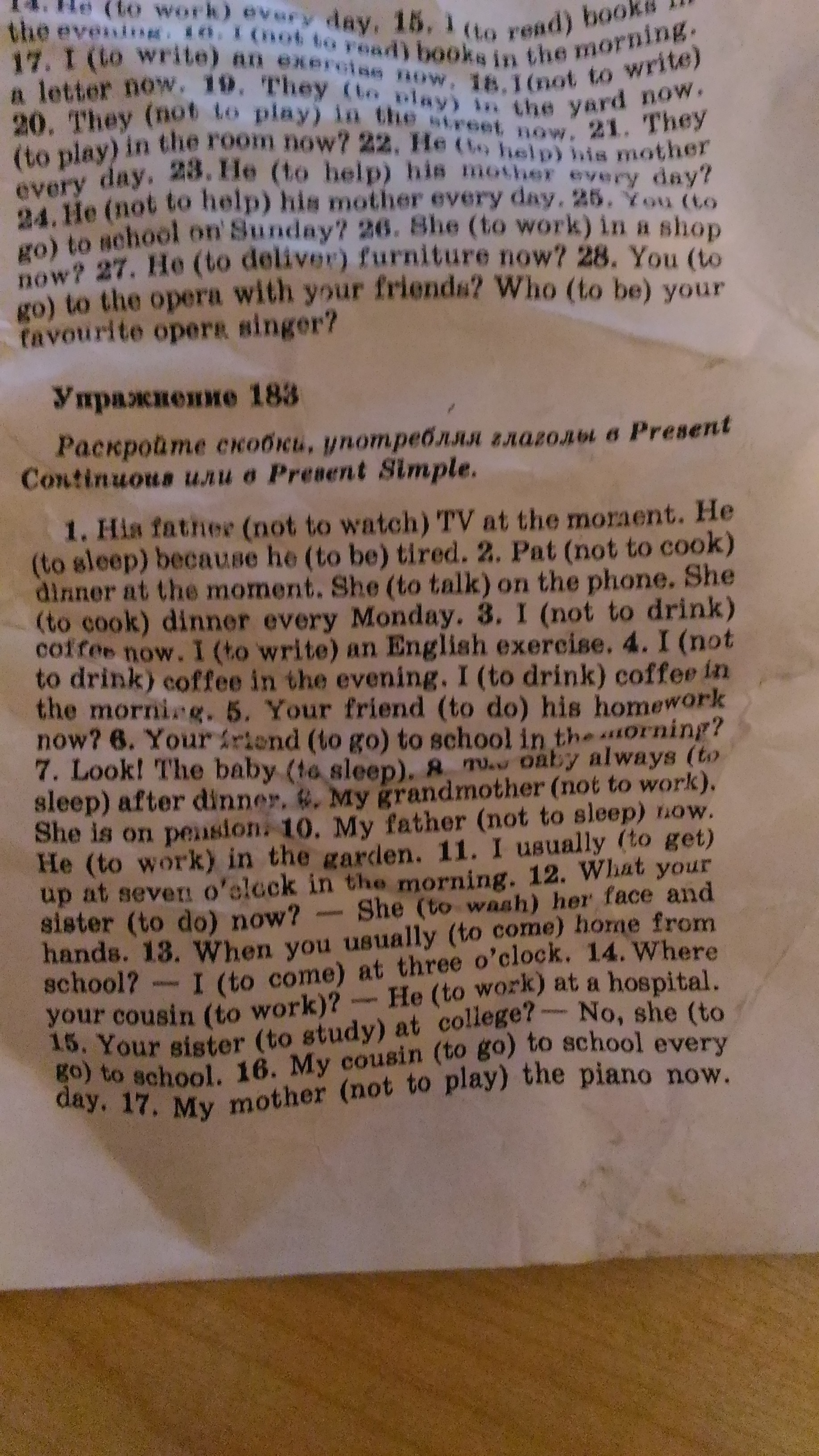 17. My mother is not playing the piano now. She plays the piano in the morning.