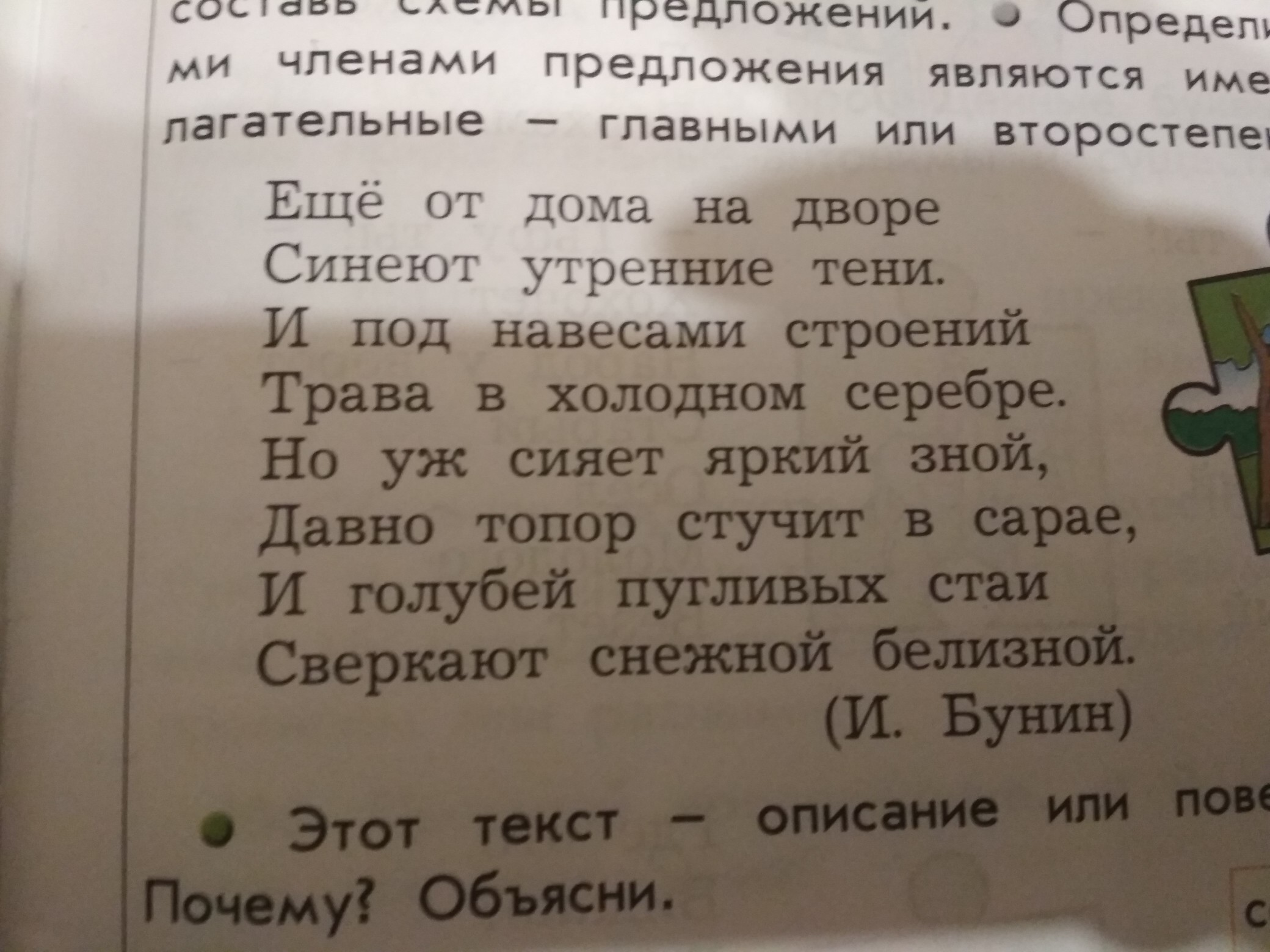 Прилагательные:Синеют,утренние,строений,холодном,сияет,яркий,стучит,пугливых,сверкает,снежной.