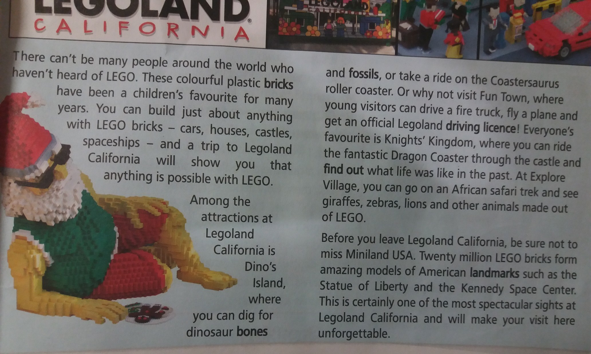 ведь не может быть много людей во всем мире, которые не слышали бы о LEGO. Эти красочные пластиковые кирпичи были любимцем детей в течение многих лет. Вы можете построить что угодно с помощью кирпичей LEGO - автомобили, дома, замки, космические корабли - и поездка в Legoland California покажет вам, что с LEGO возможно все. Среди достопримечательностей в Legoland California - Дино, где вы можете копать динозавров и окаменелости, или прокатиться на американских горках Coastersaurus. Или почему бы не посетить веселый городок, где маленькие посетители могут водить пожарную машину, летать на самолете и получить официальные водительские права Legoland! Всеми любимое Королевство рыцарей, где вы можете ездить фантастический Дракон Coaster через замок и узнать, что жизнь была, как в прошлом. В Explore Village вы отправитесь в африканское сафари и увидите жирафов, зебр, львов и других животных, сделанных из LEGO. Прежде чем покинуть Леголенд Калифорния, не пропустите Miniland USA. Двадцать миллионов кубиков LEGO образуют удивительные модели американских достопримечательностей, таких как статуя и Космический центр Кеннеди. Это, безусловно, одна из самых зрелищных достопримечательностей Леголенда Калифорния, которая сделает ваше пребывание здесь незабываемым.