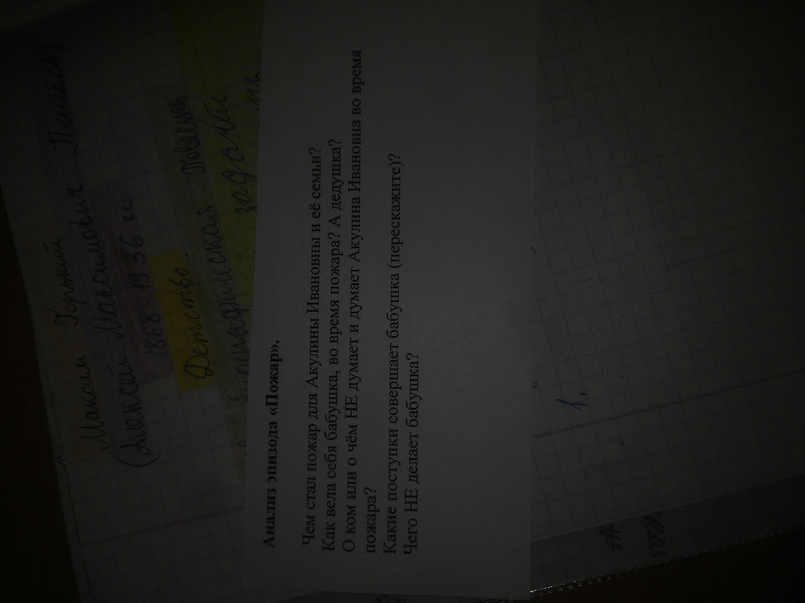 Похожая история произошла и в повести М.Горького «Детство», когда в дом деда Каширина ночью вдруг пришла беда – пожар: «Сквозь иней на стёклах было видно, как горит крыша мастерской… В огне яростно кипели котлы, густым облаком поднимался пар и дым… Багрово светился снег, и стены построек дрожали и качались…»