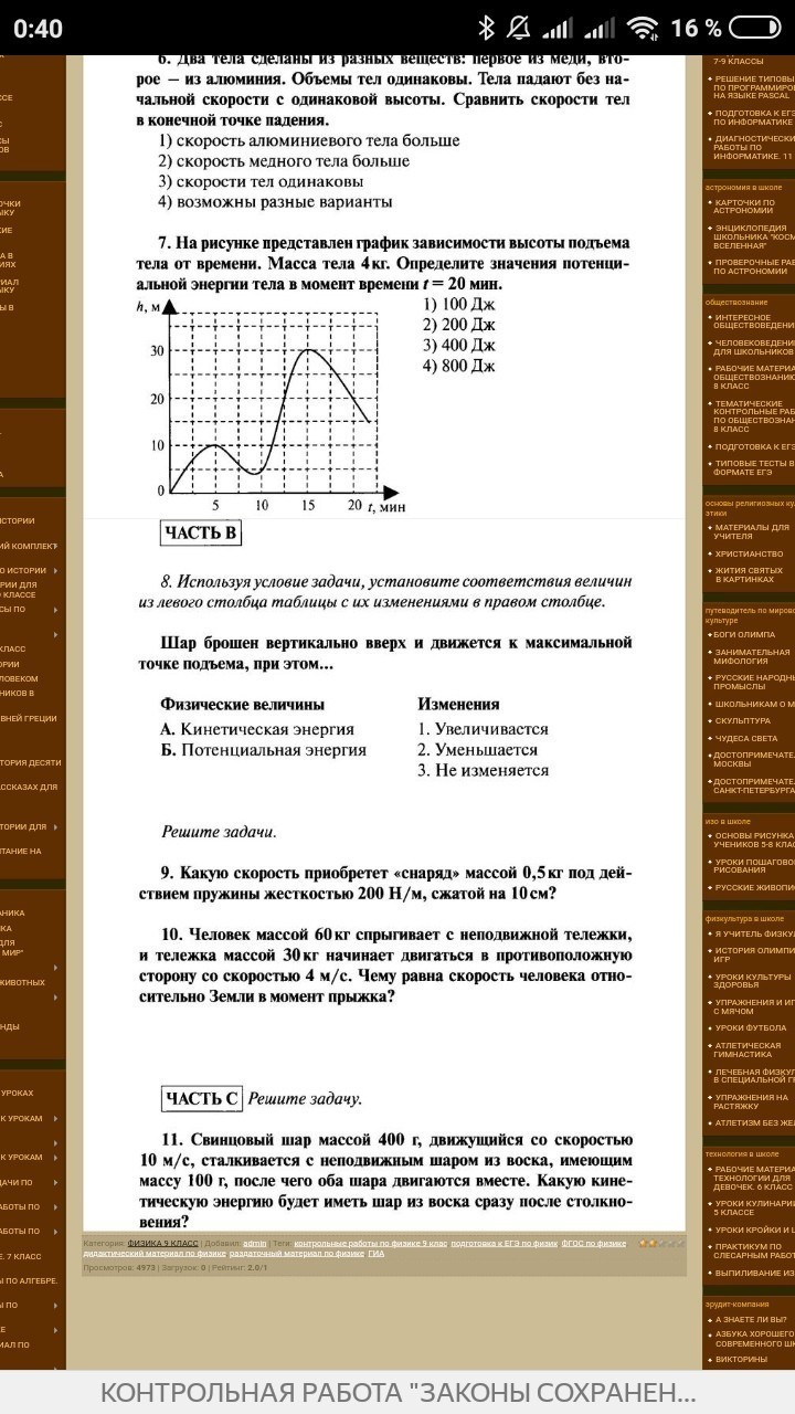 9)Fупр. = kx = 200*0.1 = 20H такую силу сообщает пружина