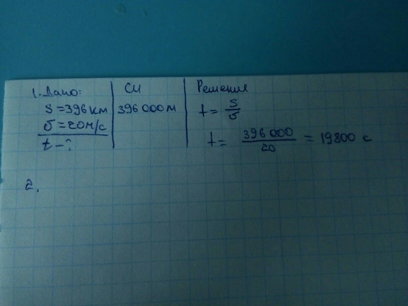 1. Сколько времени был в пути автобус, проехавший 396 км со средней скоростью 20 м/с ?