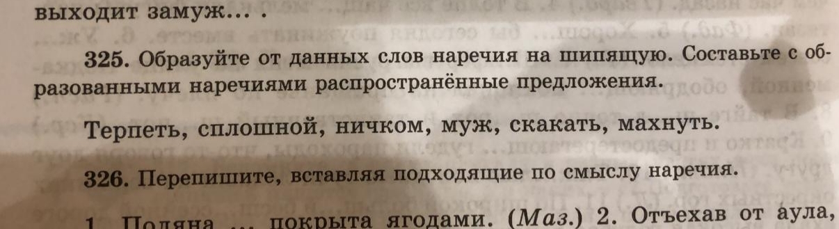 Уж замуж невтерпеж(русская пословица). В матем.школах гении сплошь и рядом. Она подбежала к нему и пала ниц. Девушка в первый раз выходит замуж. Началась погоня,и он пустился вскачь. Он ударил меня наотмашь,и я отлетел к стенке.