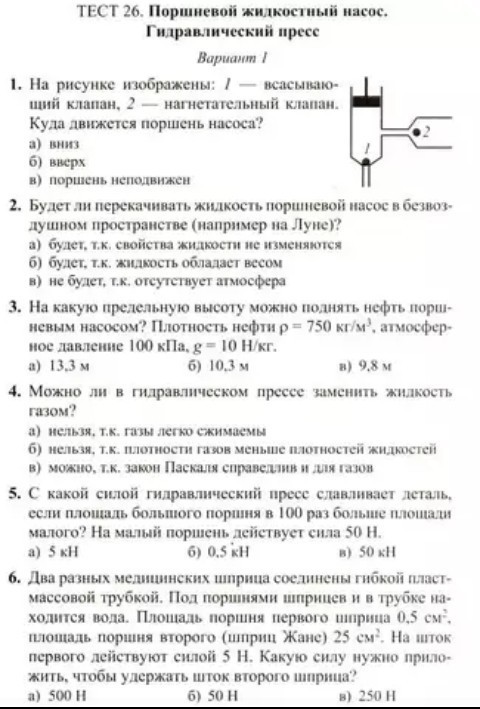 2 в. Если нет атмосферы то нет и давления которое будет заталкивать воду под поршень.