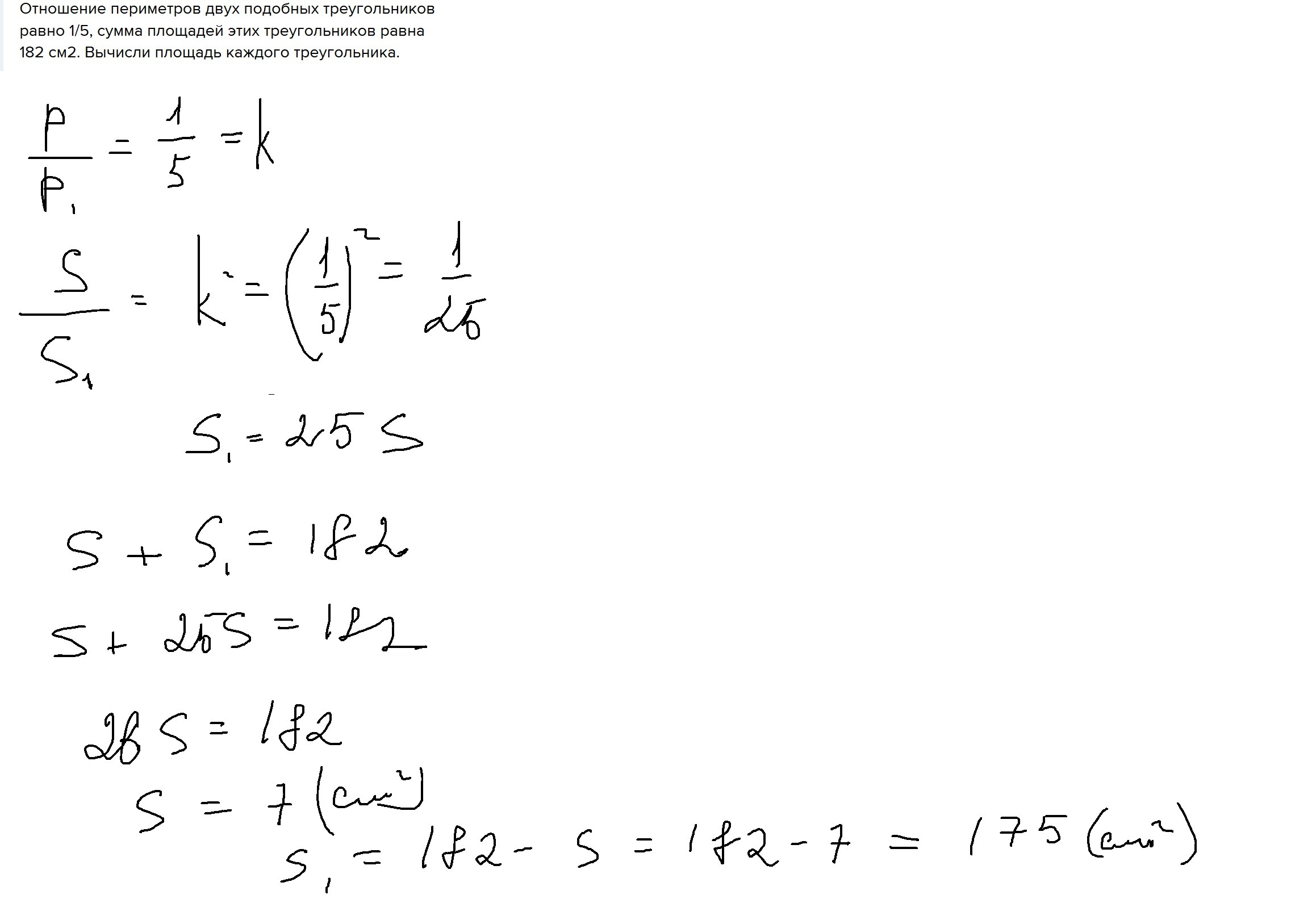 Периметр треугольника VBC равен 18 см, а площадь равна 6 см2.