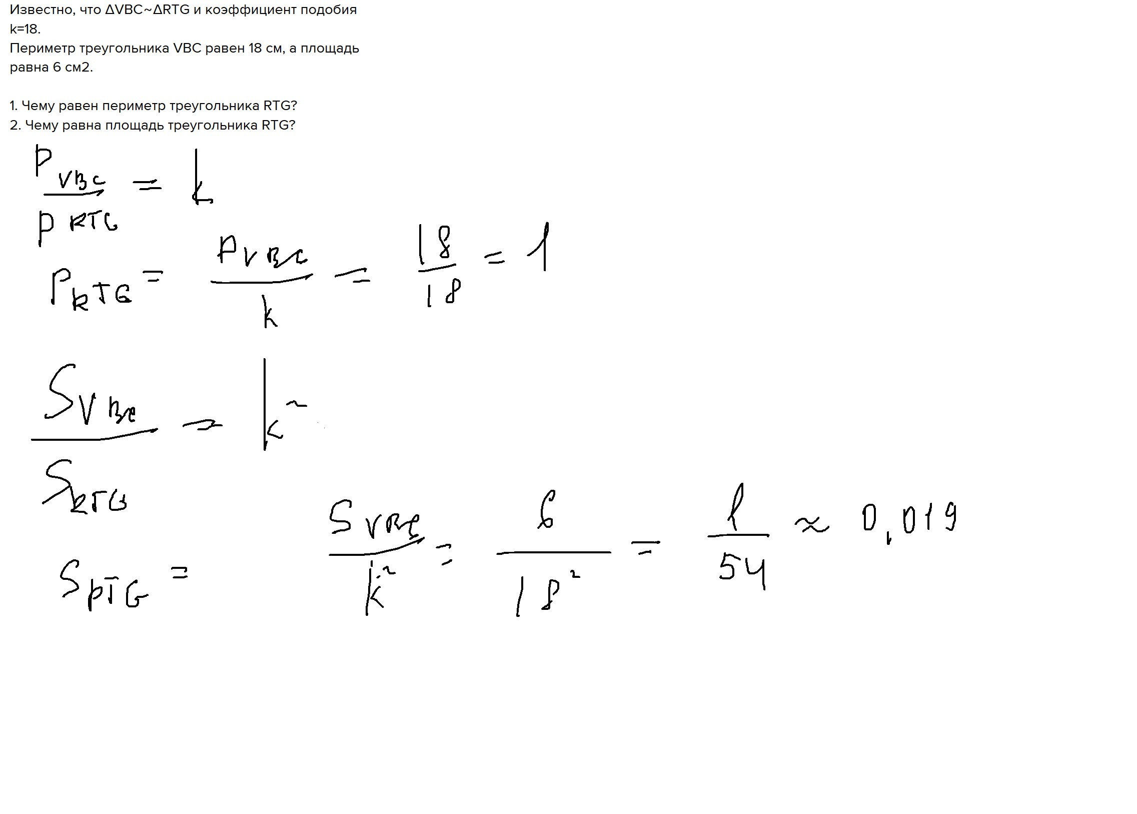 Известно, что ΔVBC∼ΔRTG и коэффициент подобия k=18.
