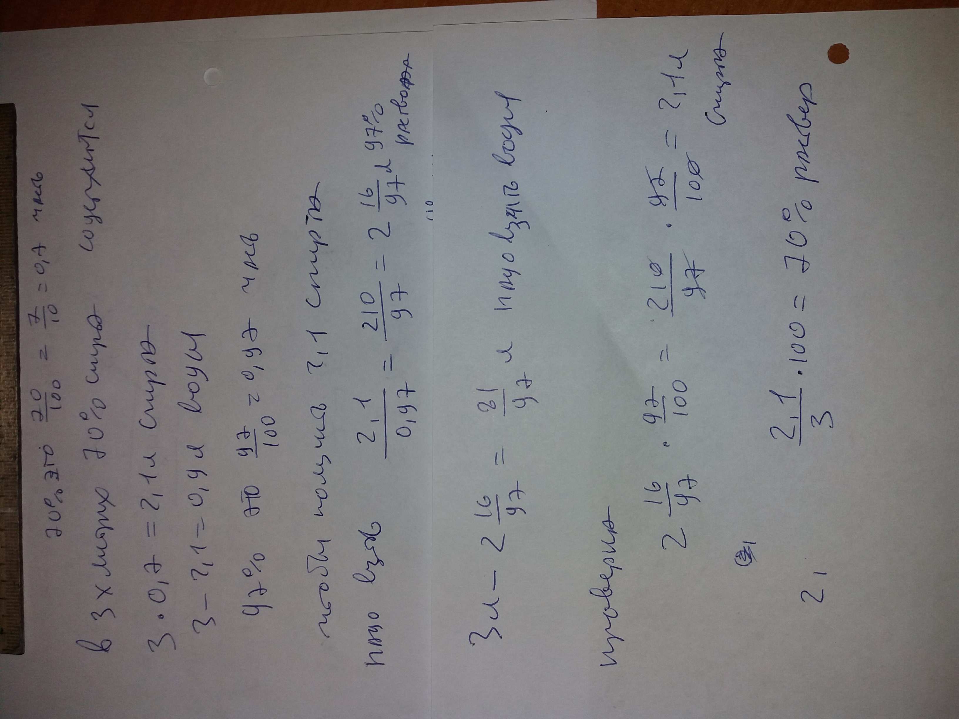 Сколько литров 97 % водного раствора спирта и воды необходимо взять, чтобы приготовить 3-х литровую водную настойку 70 % спирта ?