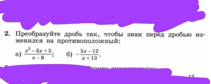 Знак минус перед дробью означает, что дробь умножена на (-1), что равносильно либо умножению на (-1) числителя, либо знаменателя .