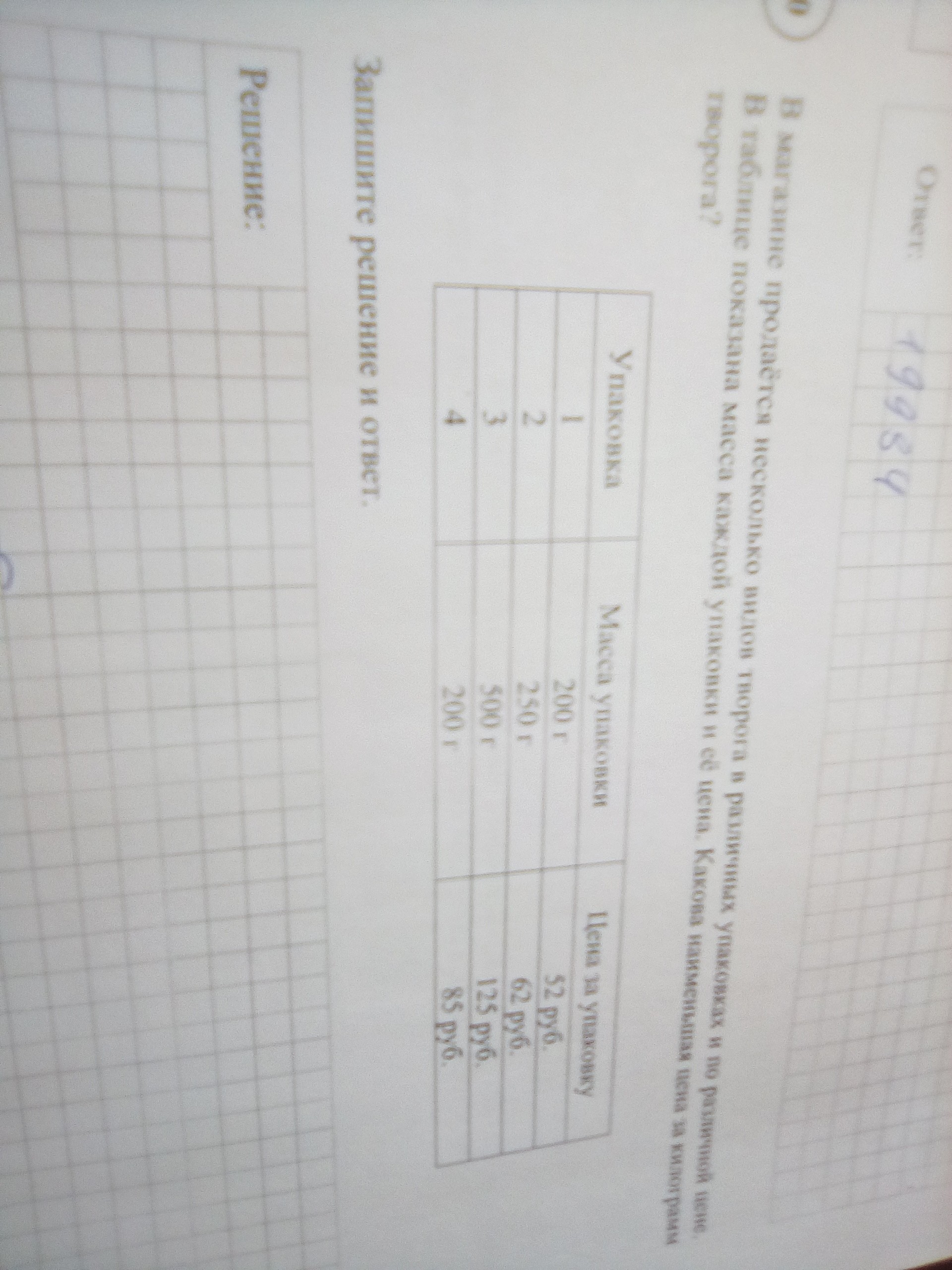 1) 200г - это пятая часть от килограмма 52р*5=260р