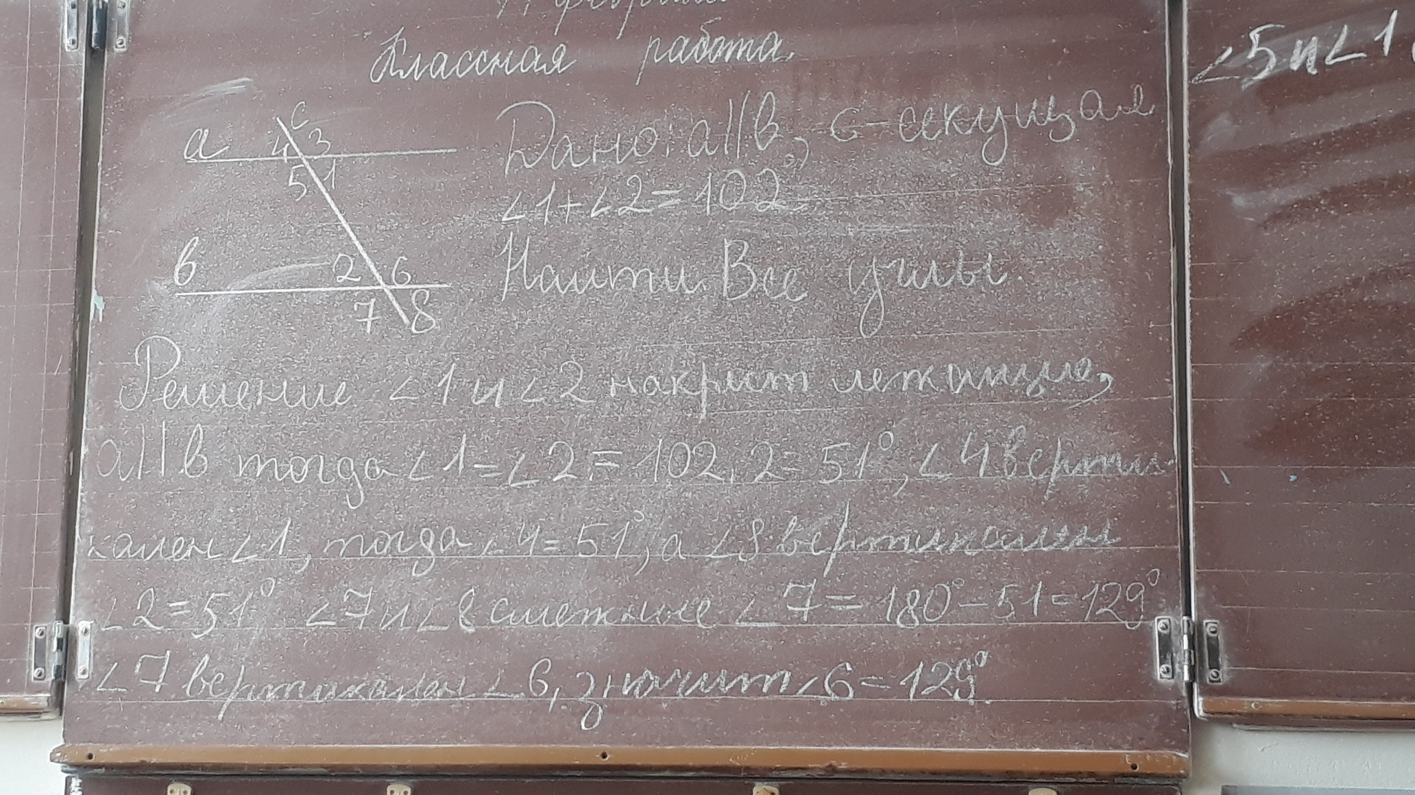 Вот мы должны обозначить углы 1 2 3 4 5 6 7 8 и потом решить