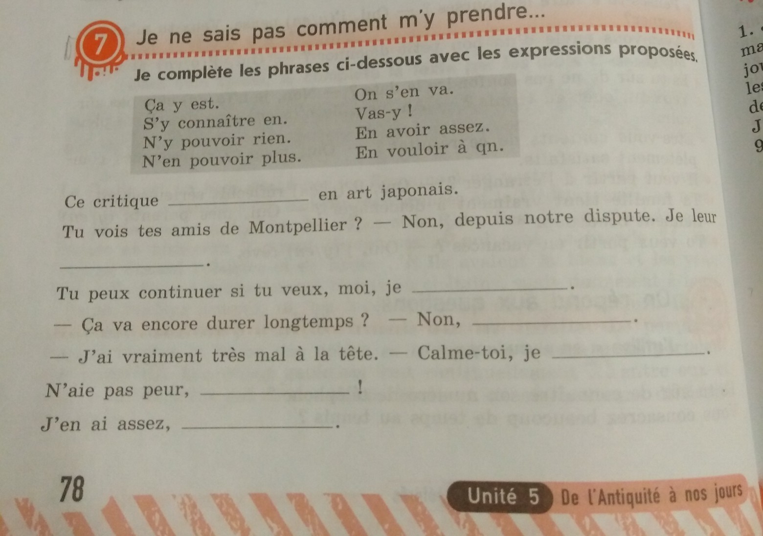 _J’ai vraiment très mal à la tête. _ Calme-toi, je n’y peux rien.