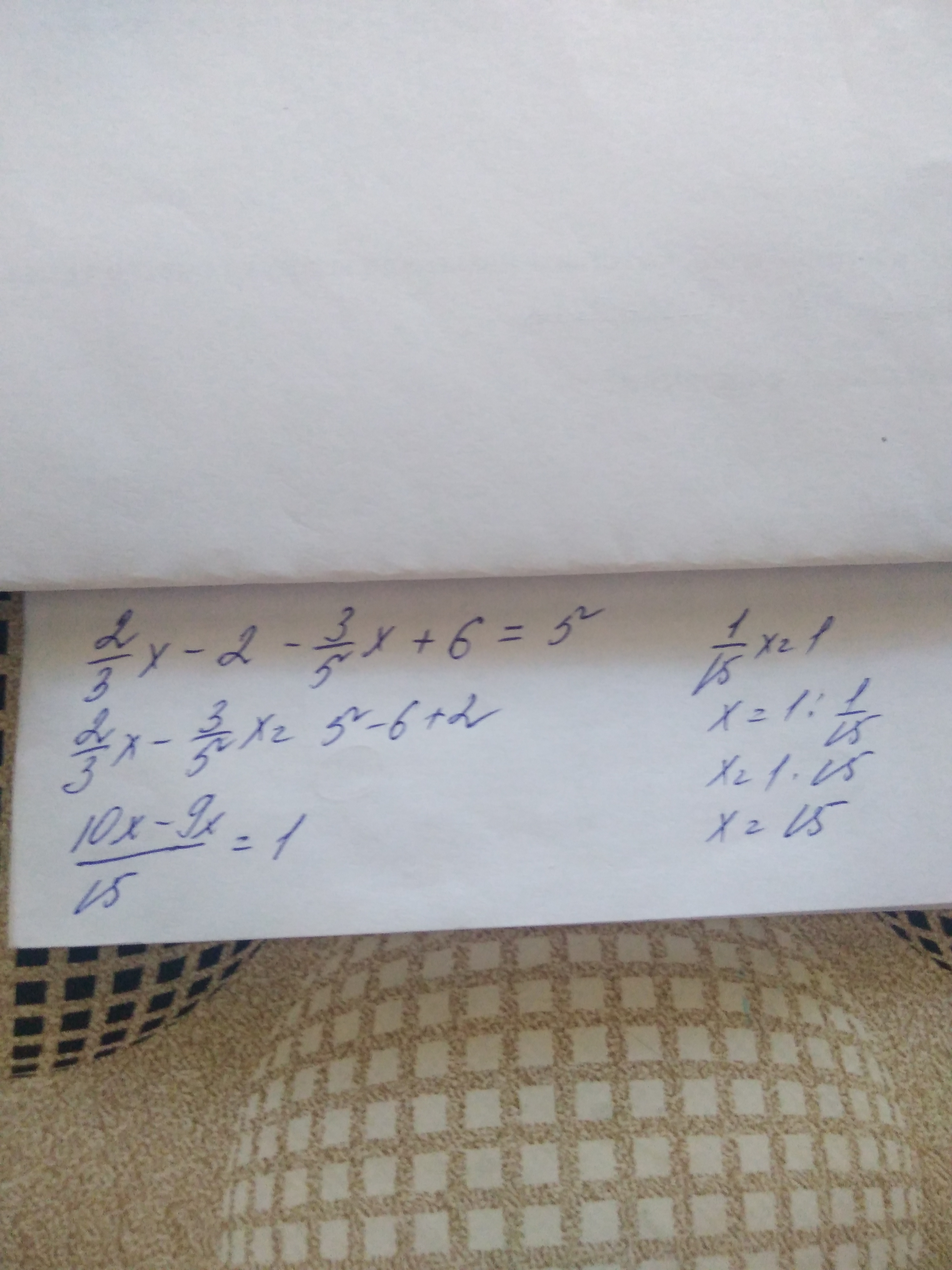 2/3х-3/5х=5-6+2=1;