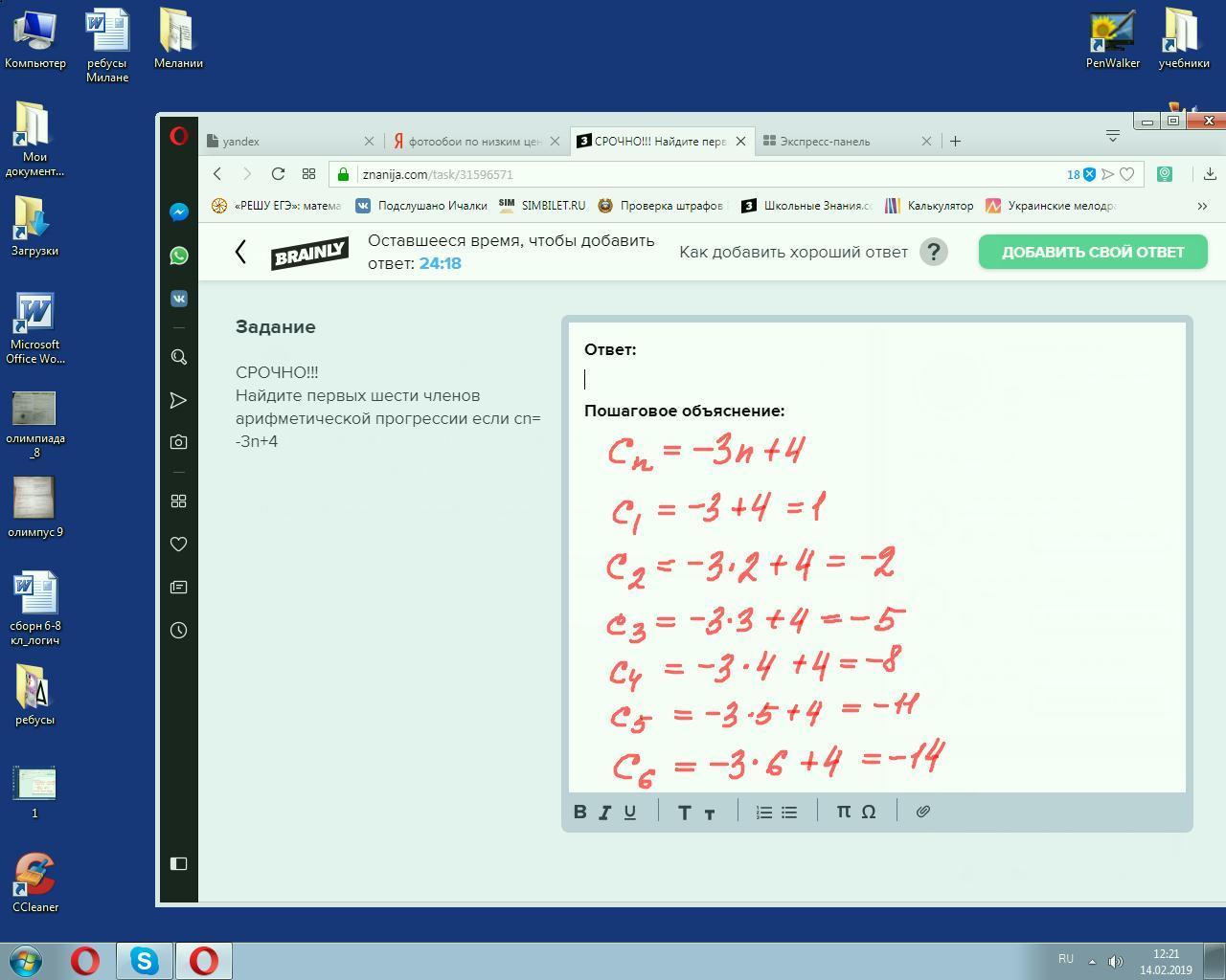 Найдите первых шести членов арифметической прогрессии если cn= -3n+4