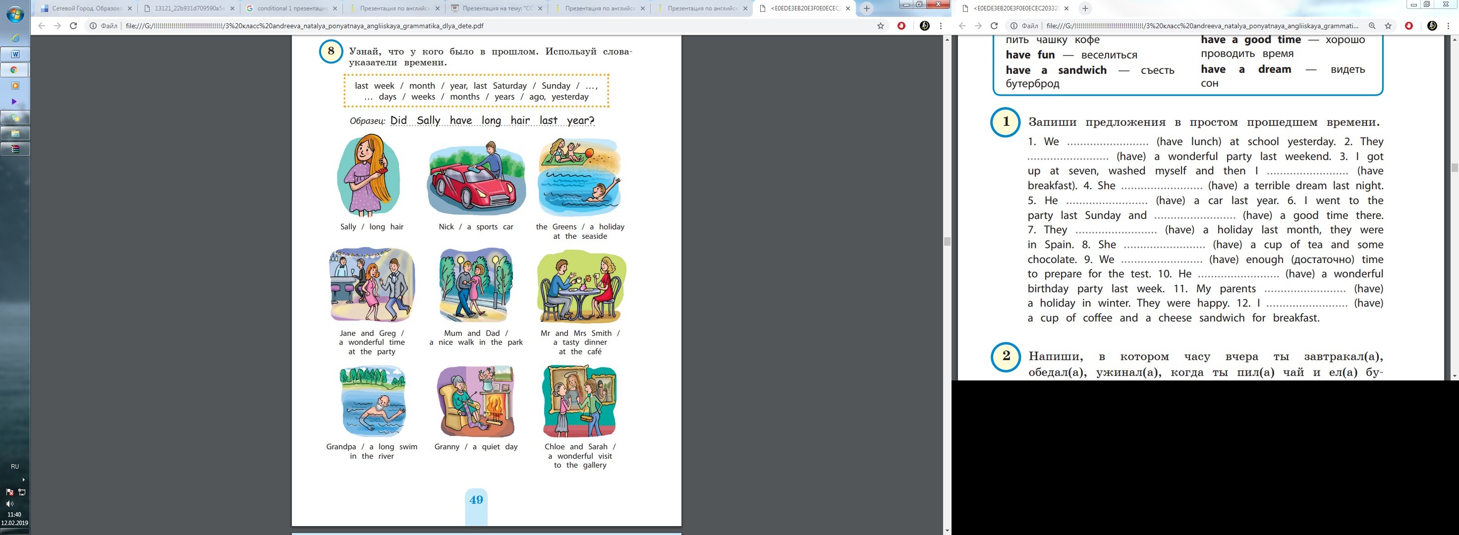 Узнай что у кого было в прошлом. Используй слова-указатели времени