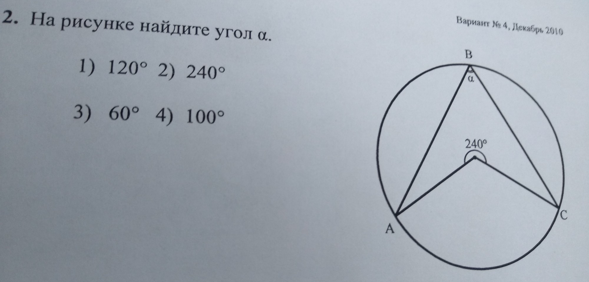 угол АОС - центральный, он равен 360-240=120, значит и дуга АС тоже равна 120. Угол АВС - вписанный, он равен половине дуги АС, то есть 60