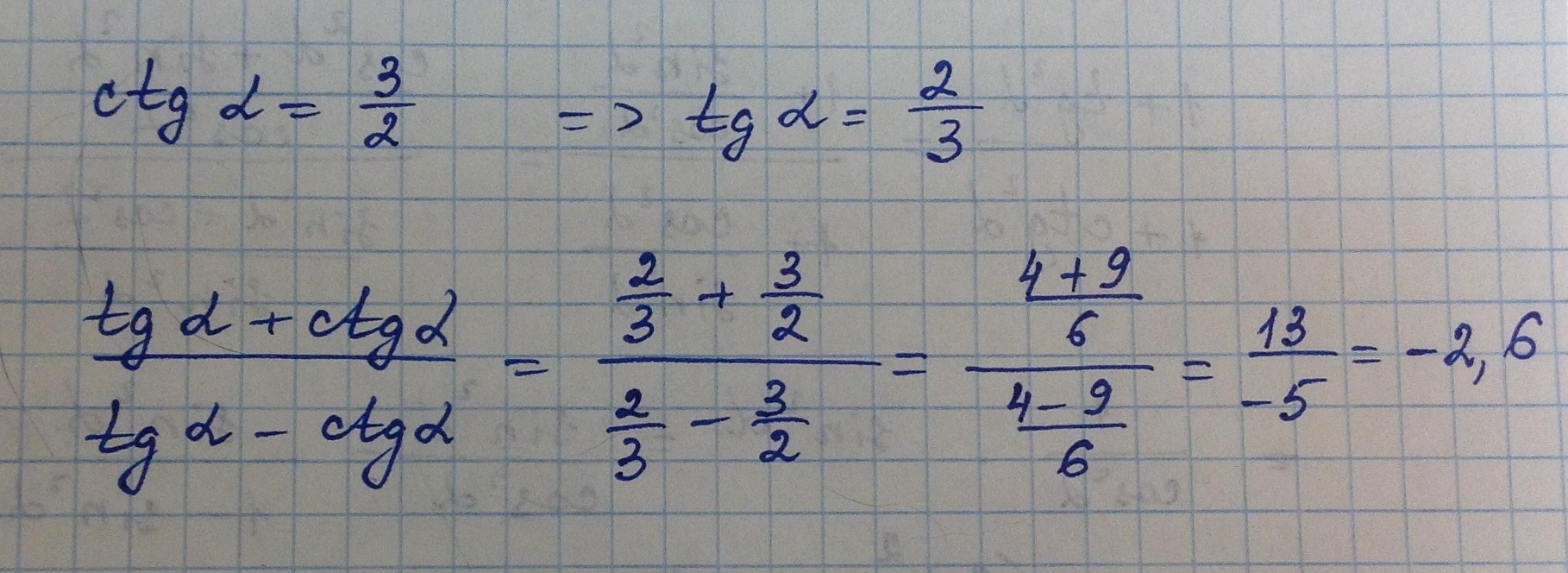 (2/3+3/2)/(2/3-3/2)=13/6:(-5/6)=-13/5