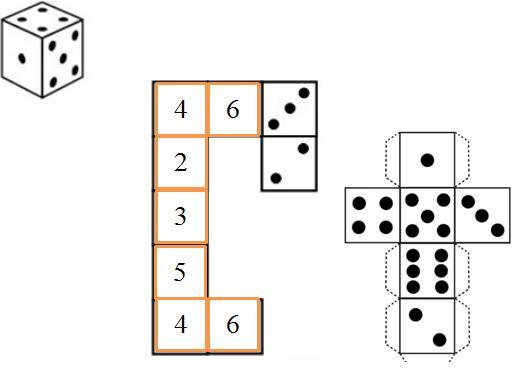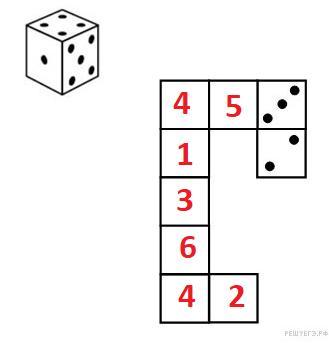 Свойство кубика - сумма на противоположных гранях равна 7.