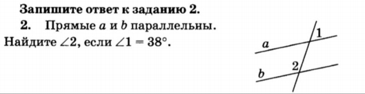 Так как а||b, то сумма накрест лежащих углов равна 180°. угол 1и2 являются накрест лежащими, следовательно угол 2=180-38=142